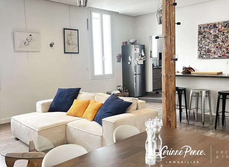Nimes Centre , proximité Esplanade , Ecusson et Préfecture.Coup de coeur pour ce duplex de charme de 95m², entièrement rénové et idéalement situé dans un quartier agréable du centre ville..Son entrée privée et indépendante, lui donnent l'allure d'une maison de ville. Ce joli P3 Bis a tous les atouts pour vous séduire.Situation idéale, 1er et dernier étage d'une copropriété impeccablement entretenue,magnifique piéce de vie trés lumineuse,cuisine semi ouverte et entièrement équipée, 2 chambres, 1 bureau/chambre d'amis, salle d'eau ,salle de bains et en rdc un cellier complète ce bien .On craque !!