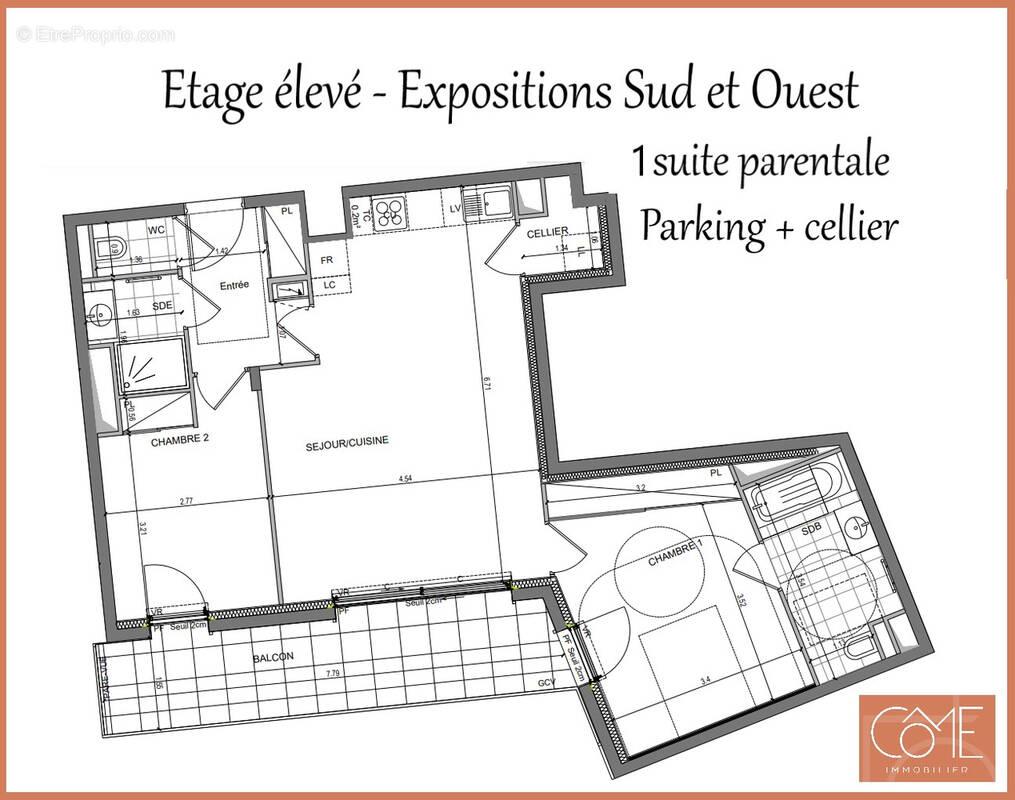Type 3 69m² Avec Terrasse Exposee Sud - Avant-Dernier Etage - Parking Et Cellier - Baud Chardonnet - Rennes Come Immobilier vous présente cet appartement de Type 3 de 69m² bénéficiant d'un beau Balcon / Terrasse de 12m² exposé Sud au 7ème étage sur 8 avec ascenseur. Cet appartement dispose de : - Une entrée avec placard - Une belle pièce de vie de 27,14m² avec cellier attenant à la cuisine. Le séjour profite d'une très grande baie vitrée coulissante exposée Sud donnant accès à la terrasse - Une terrasse de 12m² - 2 chambres dont une suite parentale avec grand placard et salle de bain - Une salle d'eau et un Wc séparé complètent cet appartement - Un parking et un cellier sont vendus avec cet appartement Véritable hymne à la douceur de vivre, Baud-Chardonnet est en passe de devenir un quartier incontournable de Rennes. Situé le long de l'axe est-ouest qui relie Cesson-Sévigné au coeur de Rennes, vous êtes à seulement 10 minutes à vélo ou en bus du centre-ville et de sa gare Un arrêt de bus est prévu juste en contrebas de la résidence. Disponible dans six mois Consultez une partie de nos offres sur notre site come - immobilier . Fr Tous nos biens ne sont pas en ligne, n'hésitez pas à nous directement Les informations sur les risques auxquels ce bien est exposé sont disponibles sur le site Géorisques : Réf. Em-646