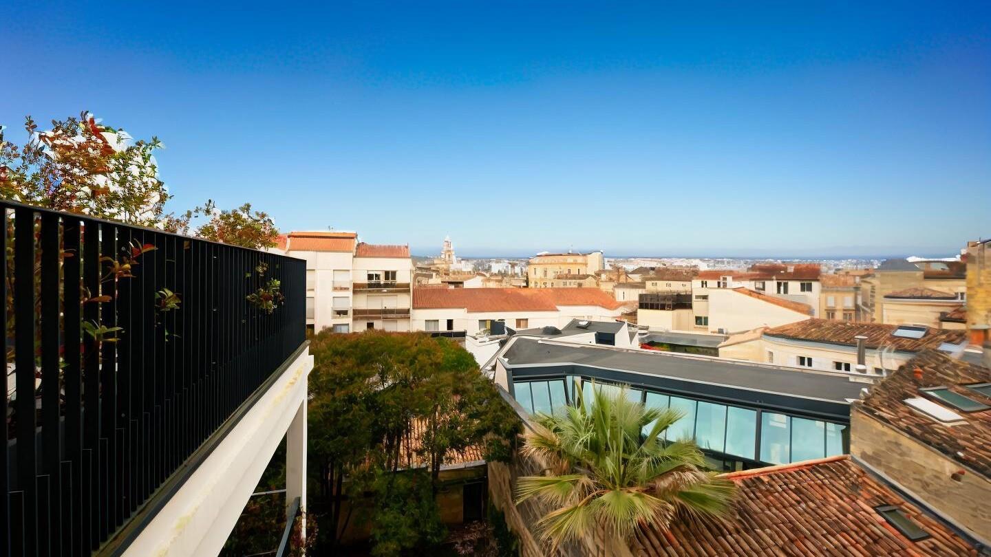 A quelques pas du Jardin Public, cet appartement de plain pied domine les toits de Bordeaux au dernier étage d'un magnifique immeuble en pierre entièrement restauré avec ascenseur. Une entrée avec placard et wc séparé mène à une belle pièce de vie profitant d'une double hauteur et d'une cuisine ouverte à aménager. Le séjour se prolonge par une terrasse de 34 m² sans aucun vis-à-vis sur laquelle arrive un ascenseur privatif . Exposée ouest, elle offre une superbe vue dégagée sur la ville de Bordeaux. L'espace nuit dispose de deux chambres avec chacune sa salle d'eau attenante. Un espace bureau actuellement ouvert pouvant faire office de 3ème chambre finalise l'ensemble. Une place de parking en amodiation à proximité complète ce lieu neuf (une partie des frais de notaire seront réduits) idéalement placé au pied du tramway et des commerces, aux prestations qualitatives et à la luminosité omniprésente. Copropriété de 4 lots - dont 4 lots habitation. (Pas de procédure en cours).