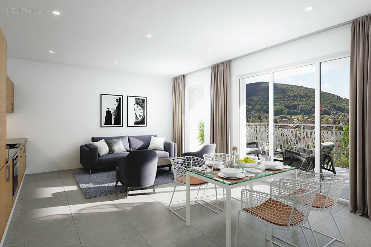 Appartement 3 pièces de 72,3m2 avec une terrasse de 16m2 Situé à proximité de nombreux commerces, services (boulangerie, supermarché ect...) , la résidence "André Bresson" est implantée dans un environnement privilégié, avec accès direct à la nature environnante. L'emplacement permet aussi d'avoir un accès aisé à Besançon. L'architecte Céline Bôle a souhaité intégrer un projet dans son environnement tout en affichant un parti moderne.