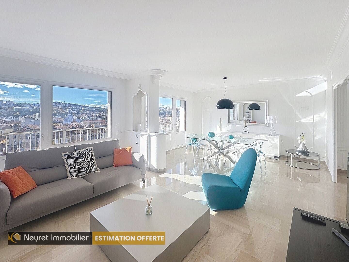 Cours fauriel, dans immeuble de grand standing ' les champs elysées' coup de coeur assuré pour cet appartement d'exception de type t5 112M2 entierement renové à neuf avec (prestation de qualité) comprenant un vaste hall d'entrée, sejour salon de 46M2 donnant accès à un grand balcon avec vue panoramique exposé plein ouest, cuisine équipée haut de gamme avec balcon exposé est, 3 belles chambres de 19M2 13M2 9M2 avec placards, salle d'eau avec meuble double vasque miroir et seche serviette,wc suspendu avec lave main. huisserie double vitrage pvc avec volet roulant electrique. garage double motorisé 2 voitures une moto en supplement 19000 euros ! cave. chaudiere immeuble neuve charges 325 euros / mois comprenant chauffage, eau chaude, entretien, concierge ascenseur etc... taxe fonciere 2700 euros. M.Adamo [Coordonnées masquées]