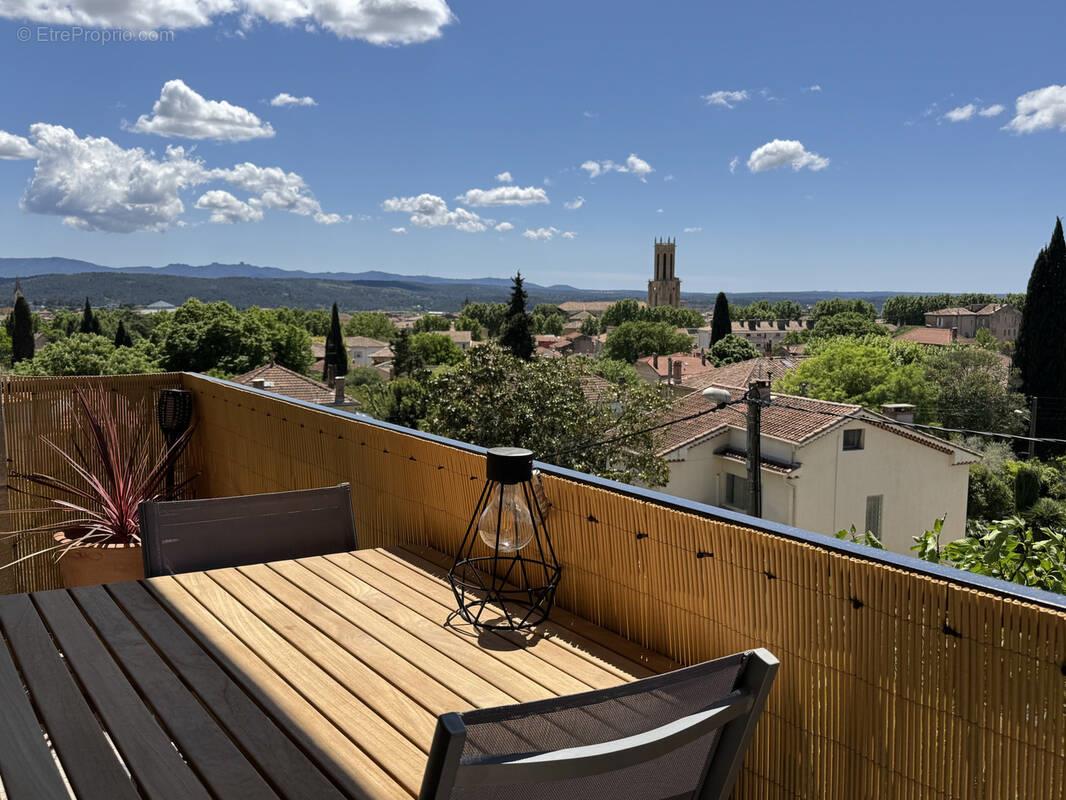 Offre Exceptionnelle, Dans le quartier très recherché de la Violette, à 2 pas du centre-ville historique, bel appartement 4 pièces refait, en 1er étage et position dominante offrant une incroyable vue sur les toits et les clochers d'Aix en Provence. Passé le hall d'entrée, vous ètes accueillis par un vaste séjour baigné de lumière donnant sur une agréable terrasse au calme. Une cuisine séparée, récente et complètement équipée fait face au séjour. Un couloir agrémenté de grands rangements vous mènent à 3 belles chambres, une confortable salle d'eau et wc, une buanderie et une loggia. Un parking privé et une grande cave complètent cet appartement ainsi que plusieurs stationnements libres dans l'enceinte de cette petite copropriété sécurisée. Un environnement choisi, une belle adresse que l'on vous enviera ! A voir rapidement ! Catherine Olivier (Ei) [Coordonnées masquées] / [Coordonnées masquées] Les informations sur les risques auxquels ce bien est exposé sont disponibles sur le site Géorisques :