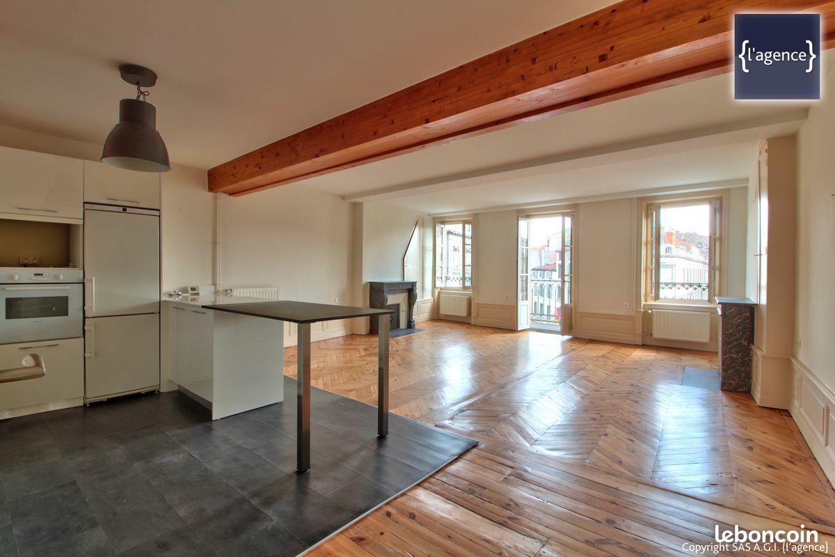 Ce T4 de caractère en plein cœur de Clermont-Ferrand offre un séjour de 46 m², parquet ancien, cheminées d’époque, balcon plein Sud avec vue panoramique et un parking privé. Un bien rare mêlant charme historique et confort moderne. Situé au troisième étage d’un immeuble de caractère, cet appartement séduit dès l’entrée grâce à un hall traversant avec verrière donnant sur la cour intérieure. La pièce de vie, vaste et lumineuse, déploie tout le charme de l’ancien avec son parquet en point de Hongrie, ses deux cheminées en vis-à-vis et ses volumes généreux. La cuisine ouverte, entièrement équipée, s’intègre avec élégance à cet espace chaleureux et convivial. Le balcon, exposé plein Sud, surplombe la rue du 11 Novembre et offre une vue dégagée jusqu’à la place de Jaude — une vraie carte postale urbaine. Un dégagement mène à une première chambre lumineuse ainsi qu’à une salle de bains. La seconde chambre, accessible depuis le hall d’entrée, complète harmonieusement la partie nuit. Un cabinet de toilette indépendant apporte un confort supplémentaire. Côté prestations : chauffage individuel au gaz, double vitrage bois, belle luminosité, aucun vis-à-vis et une atmosphère unique, entre authenticité et modernité. Deux greniers situés à l’étage supérieur, ainsi qu’une cave en sous-sol, offrent de précieux espaces de rangement. Et pour parfaire l’ensemble, une place de stationnement privative, située à 750 mètres dans la cour sécurisée d’un autre immeuble, est vendue avec l’appartement. Transports, commerces, écoles, collèges et lycées sont accessibles à pied. Une adresse rare pour les amateurs de charme en plein centre-ville. Bien soumis au statut de la copropriété. Charges : 65 €/mois Pas de procédures en cours. Les informations sur les risques auxquels ce bien est exposé sont disponibles sur le site Géorisques : Zone de sismicité : 3 Radon : 3 Zone Argile : exposition forte Plan d’exposition des bruits : Non Montant estimé des dépenses annuelles d'énergie pour un usage standard : entre 1110 € et 1530 € par an. Prix moyens des énergies indexés sur l’année 2021, 2022 et 2023 (abonnements compris). Consommation énergie primaire : 143 kWh/m²/an. Consommation énergie finale : 138 kWh/m²/an.