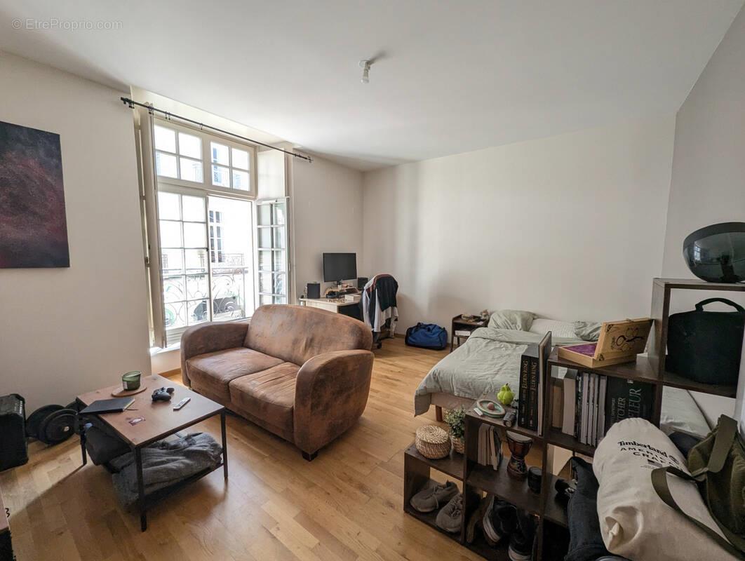 Communeau - Dans un immeuble entièrement rénové en 2016, grand studio de 32m2 composé d'une pièce de vie de 19m2, une cuisine aménagée et équipée (plaque vitrocéramique et hotte), une salle d'eau avec Wc et un cellier. Libre de toute occupation en Octobre 2025. Idéal investissement locatif ou premier achat.