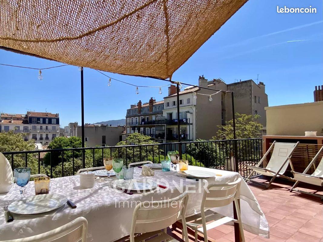 Appartement 3 pièces 88 m² Magnifique appartement de type haussmannien situé au dernier étage d’un immeuble en pierre de taille, idéalement placé dans le Carré d’Or de Marseille, Rue Paradis et proche de la place Delibes. Traversant et entièrement rénové, il allie le charme de l’ancien avec ses cheminées d’époque et ses moulures murales parfaitement préservées, et le confort moderne avec des fenêtres en double vitrage aluminium noir. Cet appartement de 82,30m² comprend une grande pièce de vie baignée de lumière donnant sur une terrasse plein ciel de 16 m², parfaite pour profiter des beaux jours, une cuisine ouverte, deux chambres, une grande salle d’eau, un Wc séparé, ainsi qu’une chambre de bonne attenante de 6,27m² et une ancienne charbonnière faisant office de cave. Un bien rare dans un emplacement privilégié. Charges : 126 euros / mois Taxe Foncière : 2198 euros / an Contact : Thomas Gensollen [Coordonnées masquées] Surface : 88 m² Honoraires à la charge du vendeur Date de réalisation du diagnostic énergétique : Consommation énergie primaire : 118 kWh/m²/an Consommation énergie finale : Non communiqué