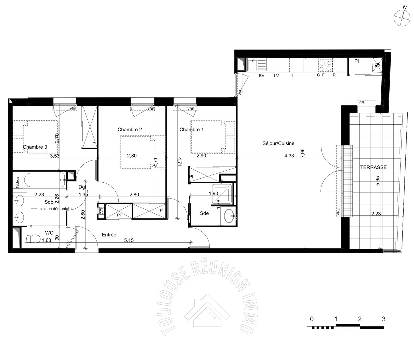 Au Cœur De SAINT-CYPRIEN Lieu d’implantation idéal, cette résidence se trouve à deux pas des commerces et services ainsi qu’à moins de 15 min à pied de l’hypercentre-ville de Toulouse. 21 appartements neufs du T1 au T5 avec loggias, terrasses ou balcons pour tous les logements. En forme de U, le bâtiment s’ouvre sur un jardin central, lieu de rencontre et de détente pour des habitants qui bénéficient également de toitures terrasses végétalisées. La résidence propose un parking semi-enterré, recouvert d’un espace vert de 44 places de stationnement. TOULOUSE Reunion Immo vous propose cet appartement de type T4 de 89.56m2 habitable comprenant : Une entrée de 8.73m2, un séjour / cuisine de 39.31m2, une chambre de 13.47m2, une chambre de 12.17m2, une salle de bain de 5.05m2, un Wc de 1.45m2, une terrasse de 13.10m2, ainsi que 2 places de parking. Dispositif(s)• Accession • Pinel • Prix Tva 20% N'hésitez pas à nous pour tout renseignement ou . Carte professionnelle de transactions immobilières No Cpi Délivrée par : Cci de Toulouse. Siret : —Dpe en cours Les honoraires sont à la charge du vendeur. Les informations sur les risques auxquels ce bien est exposé sont disponibles sur le site Géorisques : Annonce proposée par l’agence