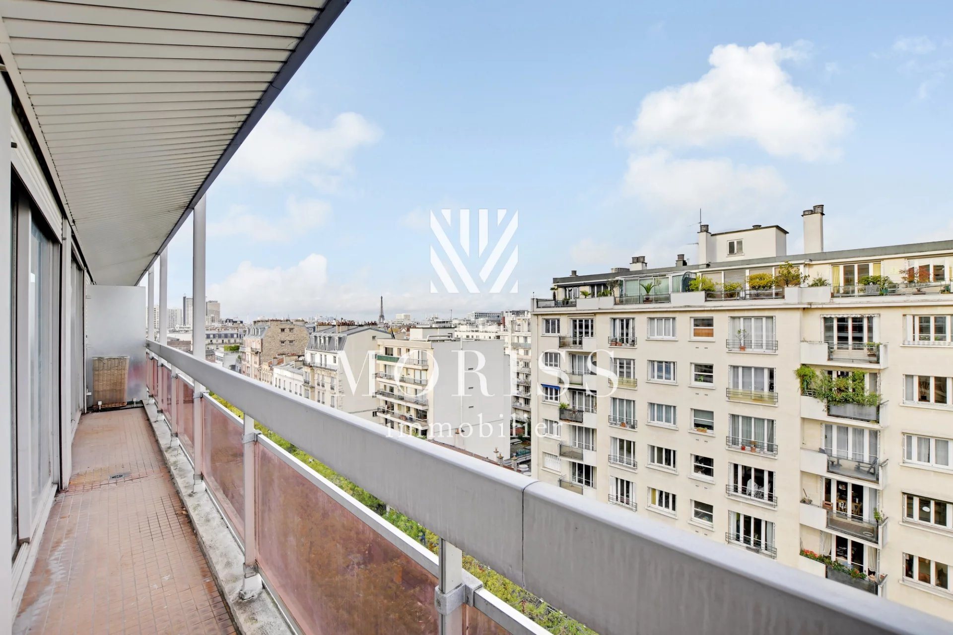 75014 Paris - 3/4 pièces - Balcon - Vue tour Eiffel Proximité immédiate du métro et des commerces/Rue d'Alésia. Situé au 9ème étage avec ascenseur d'un immeuble de bon standing avec gardien datant de 1977, appartement de 77 m2, composé d'un séjour donnant sur un balcon filant de 9m2, deux chambres, d'un bureau, d'une cuisine indépendante, d'une salle de bains et d'un Wc séparé. Appartement à rénover avec beau potentiel d'aménagement.Plan modulable. Un emplacement de parking et une cave en sous-sol complètent ce bien. Superbe vue dégagée sur la tour Eiffel. A visiter rapidement. Exclusivité Moriss immobilier.