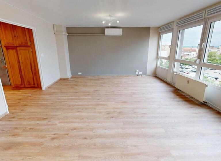 À saisir à Metz Sainte Thérèse rue du XXème Corps Américain : En exclusivité, bel appartement entièrement rénové 5 pièces de 95.41m² au 4ème et dernier étage d'une copropriété bien entretenue. Il se compose d'une entrée avec placards, donnant sur une cuisine toute équipée neuve avec balcon, d'un vaste et lumineux salon-séjour, de trois chambres, d'un wc séparé et d'une salle de bain rénovée. Vous profiterez également de deux grandes caves ainsi que de deux garages en arrière-cour. Copropriété de 16 lots d'habitations, chauffage collectif urbain avec répartiteurs, charges annuelles : 4339 euros chauffage et eau chaude inclus, climatisation réversible dans tout le logement, ascenseur, cuisine et sanitaires équipés et neufs, placards, vidéophonie, porte blindée, porte de garage neuves, vue dégagée. Futur Mettis, tous commerces et services à proximité immédiate au pied de l'immeuble, gare à 10mn. Honoraires charge vendeur. Visite virtuelle disponible ! N'hésitez pas à Jean-Charles Pruneau au ou , votre conseiller Orpi Diedrich pour organiser une visite. Sarl Gesim Transac / Rcs Nancy 451 356 687 / Cpi 020 821 Référence agence : 8708