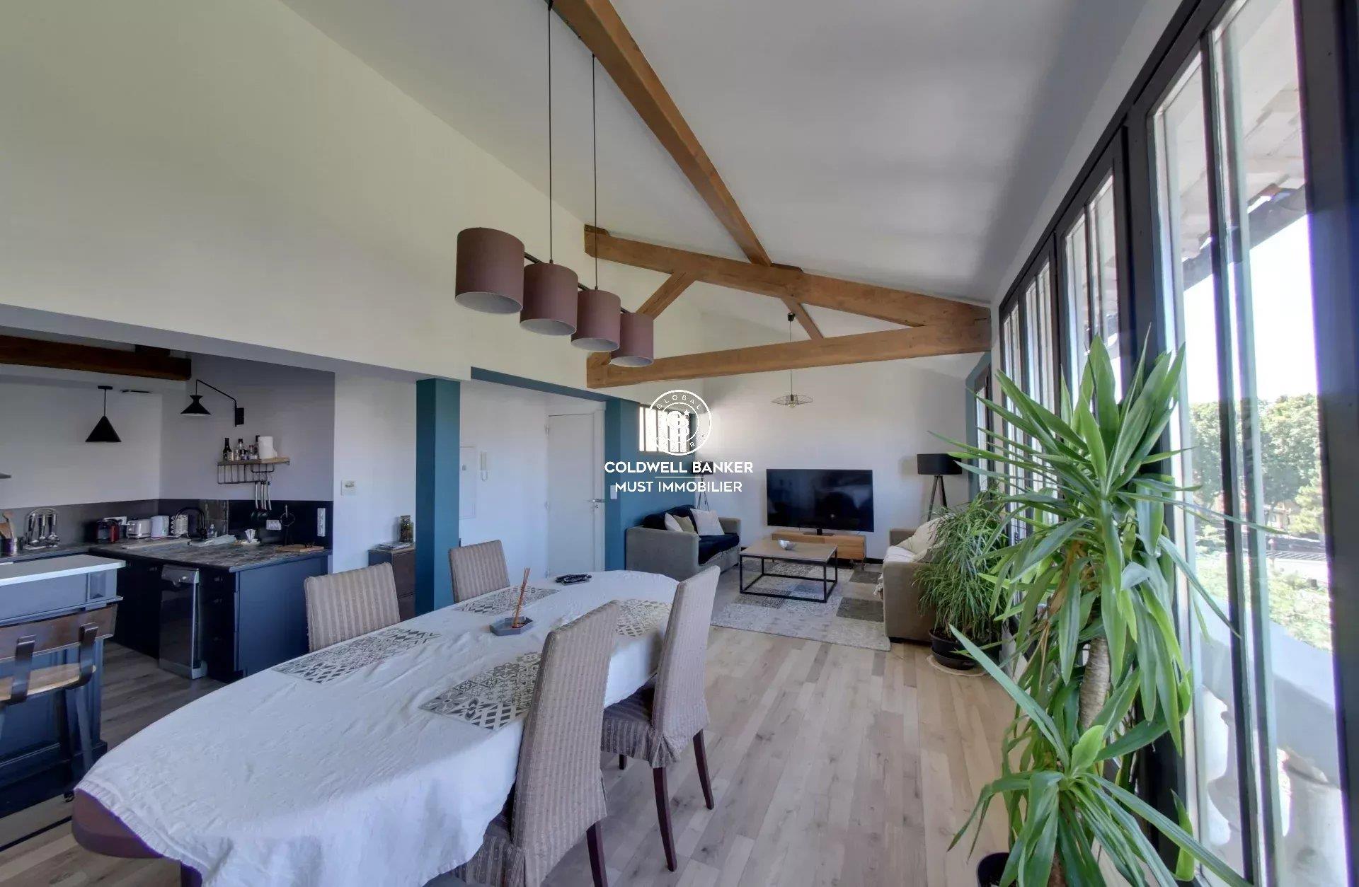 Amoureux de l’authenticité et des belles rénovations, ce bien est fait pour vous ! Situé au 3e et dernier étage (sans ascenseur) d’une petite copropriété de seulement 5 lots, ce superbe appartement entièrement rénové conjugue caractère et confort moderne, au cœur du centre-ville de Perpignan. Dès l’entrée de l’immeuble, le charme opère : carreaux de ciment, jolie porte d’époque, cage d’escalier soignée avec marches et peinture en excellent état. L’Ensemble témoigne d’un entretien rigoureux et d’un esprit de lieu préservé. L’appartement séduit par sa vue dégagée sur le parc, sa luminosité naturelle et son ambiance chaleureuse. Vous serez conquis par les menuiseries bois de style atelier, la hauteur sous plafond, les poutres apparentes et les matériaux de qualité qui confèrent à ce bien une atmosphère unique. Il offre deux belles chambres, chacune avec sa propre salle d’eau : baignoire pour l’une, douche pour l’autre, Wc séparé, cuisine entièrement équipée, double vitrage, climatisation gainable pour un confort optimal toute l’année. Un bien rare, prêt à vivre, où chaque détail a été pensé avec goût. Les informations sur les risques auxquels ce bien est exposé sont disponibles sur le site Géorisques :