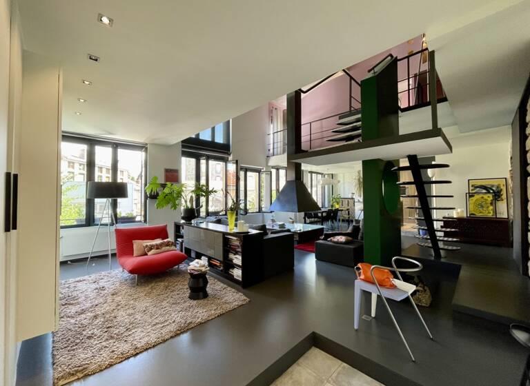 Saint-Étienne : Splendide loft de 113 m2 (130,79m2 au sol) alliant espace et lumière. Ce bien offre de vastes volumes ouverts. Il se compose d'une cuisine équipée sur une belle pièce de vie, une chambre (possibilité 2), une salle d'eau, une salle de bains. (...