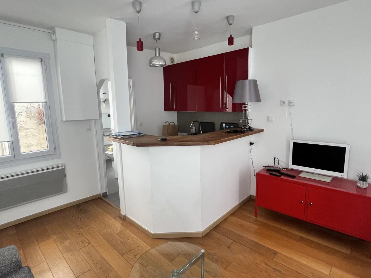 Dans un bel immeuble ancien , en second immeuble nous proposons un appartement traversant. au 4eme etage sans ascenseur, l'appartement en bon etat est compose d'une piece a vivre avec une cuisine americaine, une chambre, une salle de bains avec wc. une cave complete ce bien