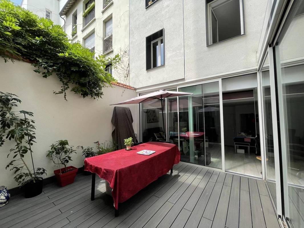 Centre Immobilier Diderot vous propose à la vente dans une maison de ville rénovée en 2013 et divisée en deux lots de copropriété, un duplex de 94 m2 carrez avec au centre un patio de 16m2. Autour du patio se trouve l'entrée, le salon et la cuisine équipée pour 51 m2, au même niveau une chambre et une salle d'eau avec wc. Un bel escalier vous mène à l'étage où se trouvent deux autres chambres, une de 10,60m2 et une double de 16,55m2 surplombant le patio ouvert et une seconde salle d'eau avec wc. Une cave de 11 m2 avec accès depuis l'appartement complète ce lot. Le chauffage est individuel avec une chaudière qui alimente des radiateurs et l'eau chaude.
