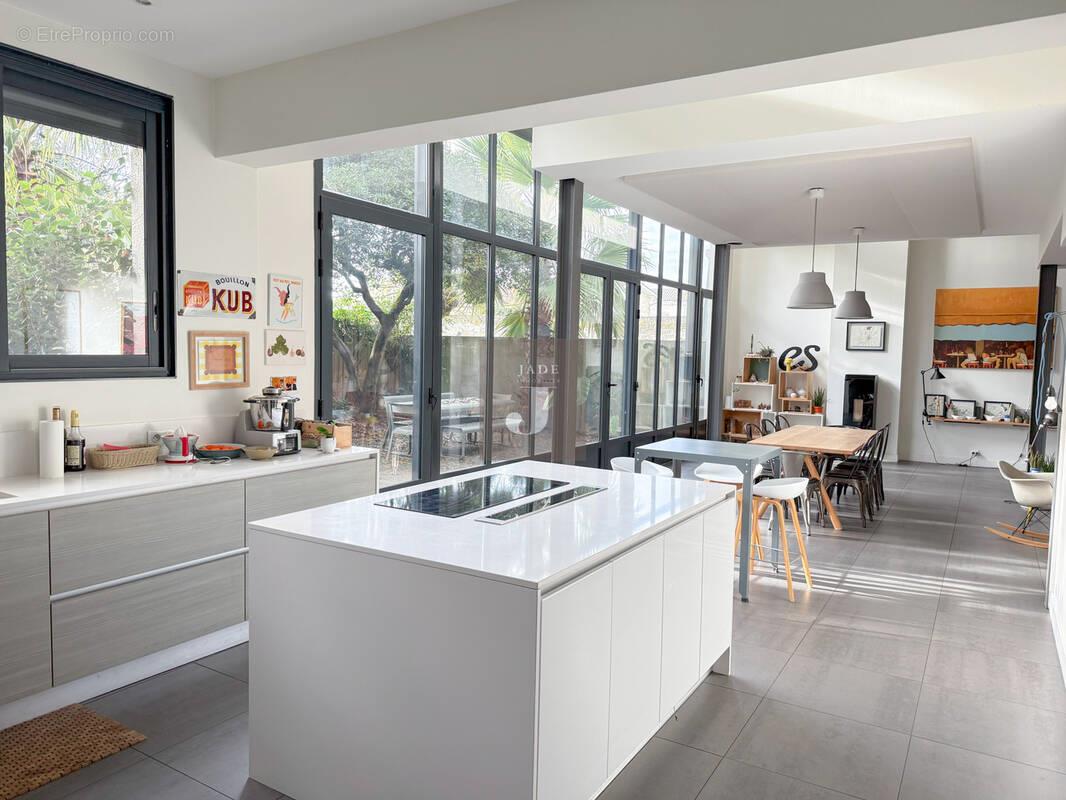 Découvrez cette jolie maison d’architecte de 225 m2, située à proximité et de la Barrière de Pessac. Avec ses beaux volumes et ses finitions soignées, elle offre un cadre de vie agréable et moderne. Au rez-de-chaussée, vous serez accueilli par une grande entrée avec dégagement, menant à une chambre côté rue, une salle d’eau et une buanderie. L’Espace de vie principal, d’une surface de plus de 60 m2, comprend une cuisine ouverte et s’ouvre sur un jardin terrassé très bien exposé, offrant un espace lumineux et convivial. Une arrière-cuisine ainsi qu’une cave à vin sont également à cet étage. L’Étage dédié à la suite parentale, accessible par un élégant escalier, propose une grande chambre donnant sur le jardin, un dressing et une salle d’eau privative.Un second escalier en pierre mène à un espace nuit supplémentaire comprenant deux suites avec Sbd et salle d’eau et une chambre seule. En complément, la maison dispose d’une cave et d’un emplacement de stationnement.Située à deux pas des commerces, des écoles et des transports en commun (bus direct vers la gare et accès au Tram A), cette maison réunit toutes les qualités pour répondre à vos attentes. Ne laissez pas passer cette opportunité unique de vivre dans une maison familiale aux prestations de qualité. Contactez-Nous dès aujourd’hui pour planifier une visite !