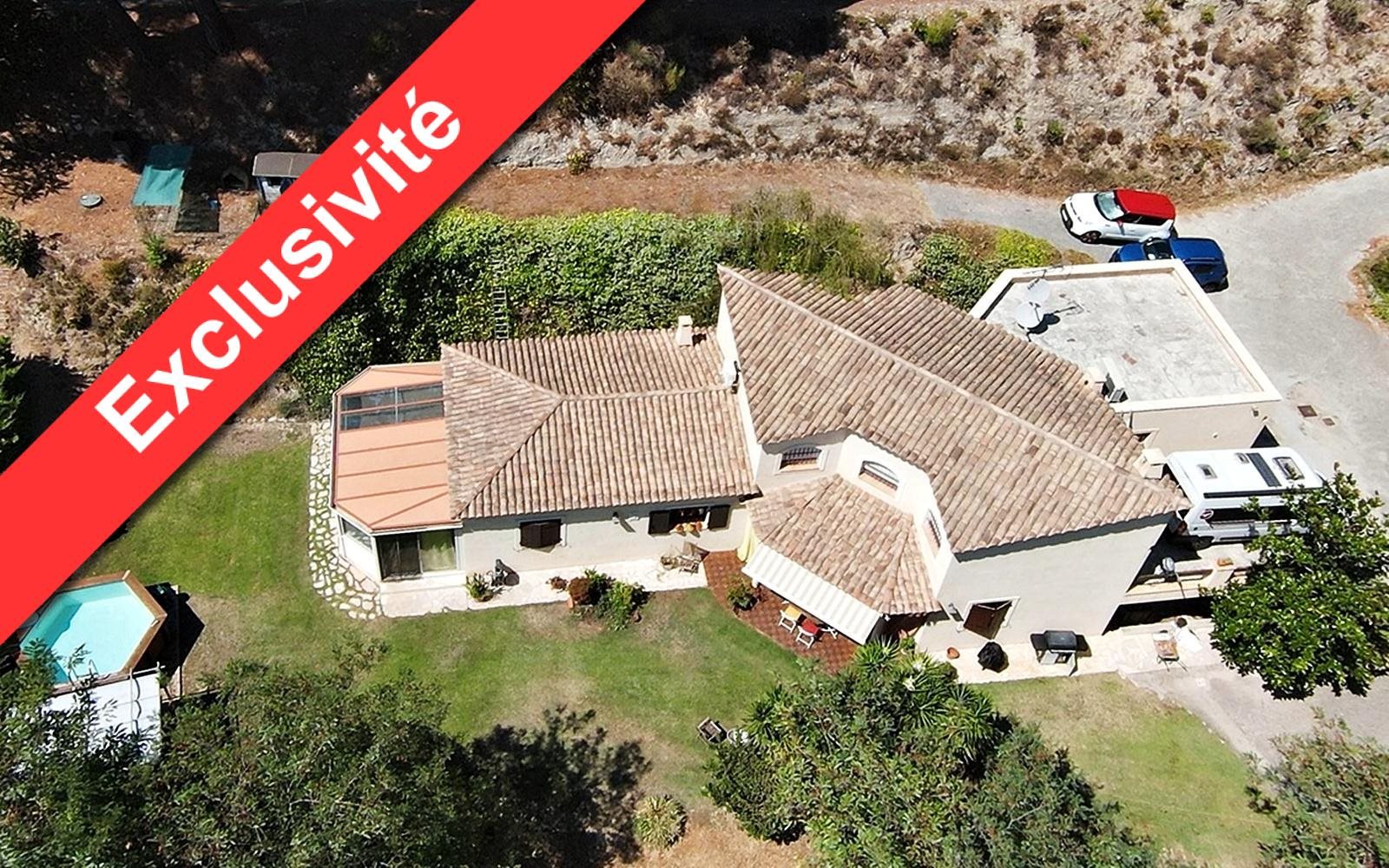 Exclusivité, entre Nice 06200 et Colomars, à seulement 3,5 kms de la Nationale 202, belle maison individuelle de 4 pièces construite en 1996. Cette villa de 164 m² habitables et 145 m² Loi Carrez est édifiée sur un joli terrain exposé plein sud. La maison propose un bel espace à vivre de 56m² avec une cuisine ouverte sur un salon et un beau séjour cathédrale avec poêle à bois et poutres apparentes. Important, 2 des 3 chambres présentent l'avantage d'être de plain-pied avec accès à une grande salle d'eau avec fenêtre, Wc indépendant et bel espace pour la buanderie. A noter, l'une des deux chambres est prolongée par une véranda de 19m² qui pourra accueillir une belle salle de jeux pour les enfants, ou comme actuellement, un espace détente (jacuzzi gonflable). A l'étage, une chambre parentale avec sa salle d'eau et Wc indépendant ainsi qu'un espace de type mezzanine faisant actuellement office de bureau. Côté terrasse, celle-ci pourra accueillir tous vos convives et sa partie couverte vous permettra d'en profiter tout au long de l'année. Celle-Ci est prolongée par un beau jardin plat et complanté, avec en bout de terrain, un espace comprenant pergola et piscine hors-sol. Exposé vers le sud, le terrain bénéficie d'un bel ensoleillement tout au long de la journée, ainsi que d'un environnement calme et verdoyant. Situation et accès : Idéalement située, à seulement 10mns de l'échangeur autoroutier Nice Saint Isidore, 20mns de l'Aéroport Nice Cote D'azur, la maison est également desservie par les bus scolaires (Écoles primaires et maternelles à 3kms). Le centre-ville de Nice est facilement accessible par Magnan qui est à 14mns. Cette maison, très bien entretenue, bénéficie d'une excellente note énergétique, puisque classée en B. Enfin, il sera possible de stationner plusieurs véhicules sur le terrain dont l'accès et très facile. Annexes : . Une cave saine située à l'entresol de la maison, environ 40m², soit un bel espace pour stocker, et/ou un bel atelier. . Un garage double avec portes électriques pouvant accueillir deux véhicules, . Un espace extérieur abrité pour le stockage du bois ou autre. Spécificités techniques : . Assainissement tout à l'égout (Pas de fosse septique). . Chauffage : Pompe à chaleur installée en 2024 alimentant un plancher chauffant basse température (Seconde génération). Avec fluide réfrigérant l'été pour un maximum de confort thermique. Egalement installés, 4 climatiseurs. . Eau chaude sanitaire : Electrique. . Classe énergétique B/A. Honoraires à la charge du vendeur. Vous pouvez consulter les barèmes d'honoraires à l'adresse suivante : . Montant estimé des dépenses annuelles d'énergie pour un usage standard : entre 1 266 et 1 714 euros. Prix moyens des énergies indexés en 2021.