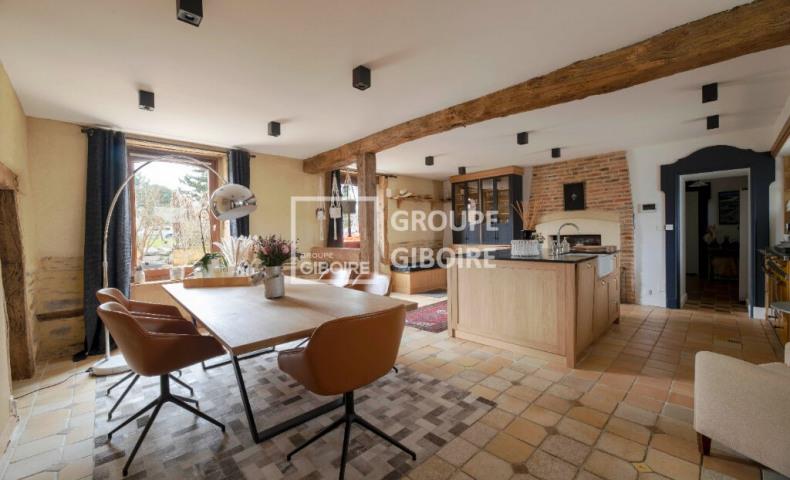 L'agence Giboire de Bruz vous propose cette magnifique bâtisse de 226 m² habitables (270 m² au sol) entièrement rénovée avec des prestations très qualitatives et à la décoration soignée. Elle est située au sein d'un hameau en sortie de Noyal Châtillon sur seiche proche de toutes ses commodités. Volumes, cachet et authenticité seront au rendez-vous. Elle vous offre au rez-de-chaussée de beaux espaces de vie avec une grande cuisine aménagée et équipée ouverte sur le séjour, un salon avec cheminée, un deuxième salon - bibliothèque (possibilité d'y aménager une suite parentale au au besoin), une salle d'eau et deux Wc. A l'étage : un dégagement avec de nombreux rangements distribue quatre grandes chambres dont une suite parentale avec salle de bains attenante, salle d'eau supplémentaire, Wc. Côté pratique, une arrière cuisine aménagée et équipée, une buanderie et une cave viennent compléter le tout. En extérieur, vous bénéficierez d'une grande terrasse avec vue imprenable sur un jardin paysager d'environ 3000 m² exposé Sud, aménagé d'une piscine et sans aucun vis-à-vis. Pool house, atelier et porche pour un stationnement couvert de deux véhicules, cour privative. Une propriété aux prestations soignées au sein d'un environnement verdoyant et aux portes de Rennes (arrêt de Bus en face de la maison). Nous pour plus de renseignements. Prix Fai : 745 500 euros dont 5.00 % honoraires Ttc à la charge de l'acquéreur.