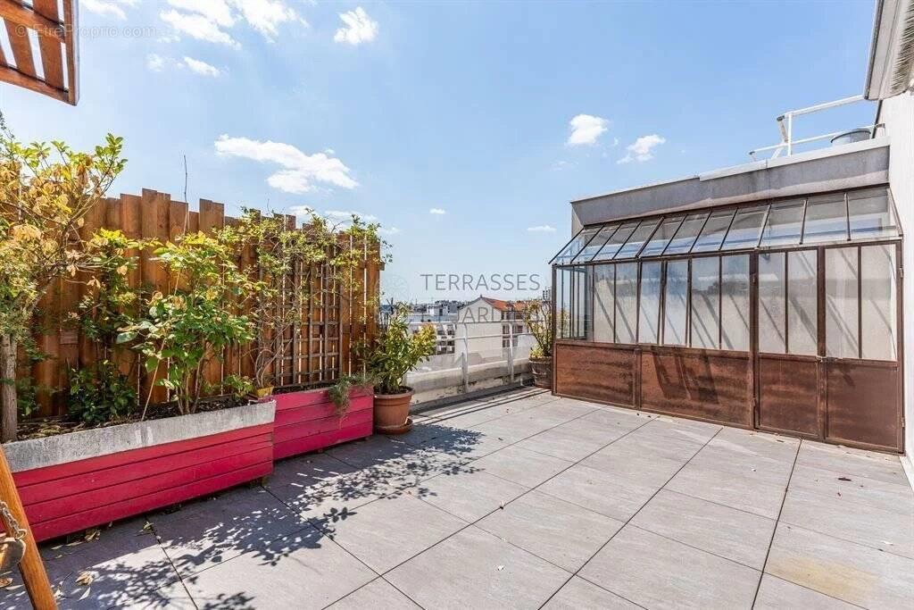 Paris 20 - Gambetta - Niché dans le quartier familial, paisible et recherché de La campagne à Paris, à proximité des commodités, cet appartement d'une surface au sol de 110 m², situé au dernier étage d'une copropriété gardiennée profite dune terrasse plein ciel avec véranda et vue sur les monuments emblématiques de Paris et le Bois de Vincennes. Spacieux et baigné de lumière, il offre des volumes rares, une cuisine équipée ouverte sur le séjour, 3 chambres, bureau. Beau potentiel daménagement. Parking en sus. L'ESPACE Extérieur : la terrasse de 28,15 m² plein ciel avec vue sur la Tour Eiffel et la Tour Montparnasse est accessible de plain-pied depuis le séjour. Le bureau et la cuisine ouvrent sur la loggia. Un grand balcon dessert chacune des chambres de plain-pied également. Appartement résolument ouvert sur différents espaces extérieurs où profiter de moments de partage au calme. Terrasse Et Jardins - Paris Est - [Coordonnées masquées]