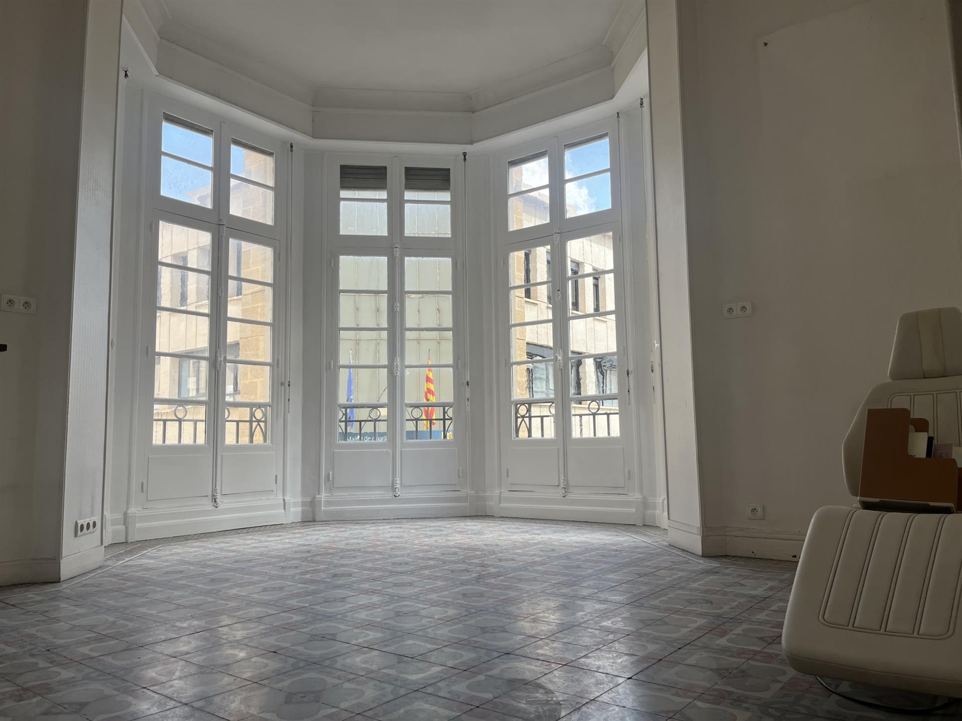 Perpignan Secteur Castillet dans bel immeuble des Années 30, Appartement développant 96m2 habitables avec très belle hauteur sous plafond, carreau ciment et Bow Window. Possibilité logement ou activité professionnelle Vendu avec Grande cave et 1 Chambre de bonne Accès commun au toit terrasse de l'immeuble avec Vue magnifique sur les toits de Perpignan