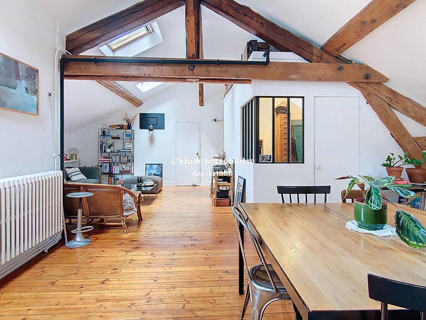 L'etude Immobilière et Foncière Eif, spécialiste de Caluire depuis 1986, est fière de vous présenter en exclusivité ce bel appartement de caractère aux volumes généreux situé à Caluire proche de Croix Rousse et du 6ème. A 10 minutes à Vélo d'Hôtel de Ville, Bus 9, 59, A 32, A71, Jd203, Vélov'.. Vous souhaitez vous offrir un bel appartement ancien aux volumes généreux, composé d'un très grand séjour (46m²) , de deux grandes chambres et un bureau, en dernier étage, au calme et sans vis à vis direct? Voici un appartement Type 4 de 120 m² au sol / 110,52m² Carrez plein de charme et d'authenticité tout en bénéficiant de la fonctionnalité des logements récents. Vous aimez la pierre, les poutres et parquets massifs? Vous rêvez d'une pièce de vie typée Loft sans renoncer à l'intimité des vraies chambres fermées et ventilées? Vous trouverez en l'état deux grandes chambres d'environ 20m² et un bureau en second jour en sachant qu'il est possible d'ajouter une troisième vraie chambre au besoin. La cuisine séparée par une verrière vous est vendue aménagée et équipée avec goût avec de multiples rangements ainsi qu'un cellier. La salle d'eau lumineuse naturellement bénéficie d'une bonne ventilation. Toutes les prestations sont soignées tant d'un point de vue esthétique que de l'isolation thermique (Dpe D). Contactez Thibault Resta d'EIF pour obtenir de plus amples renseignements et programmer votre visite. Copropriété de 15 lots (Pas de procédure en cours). Charges annuelles : 1260.00 euros.