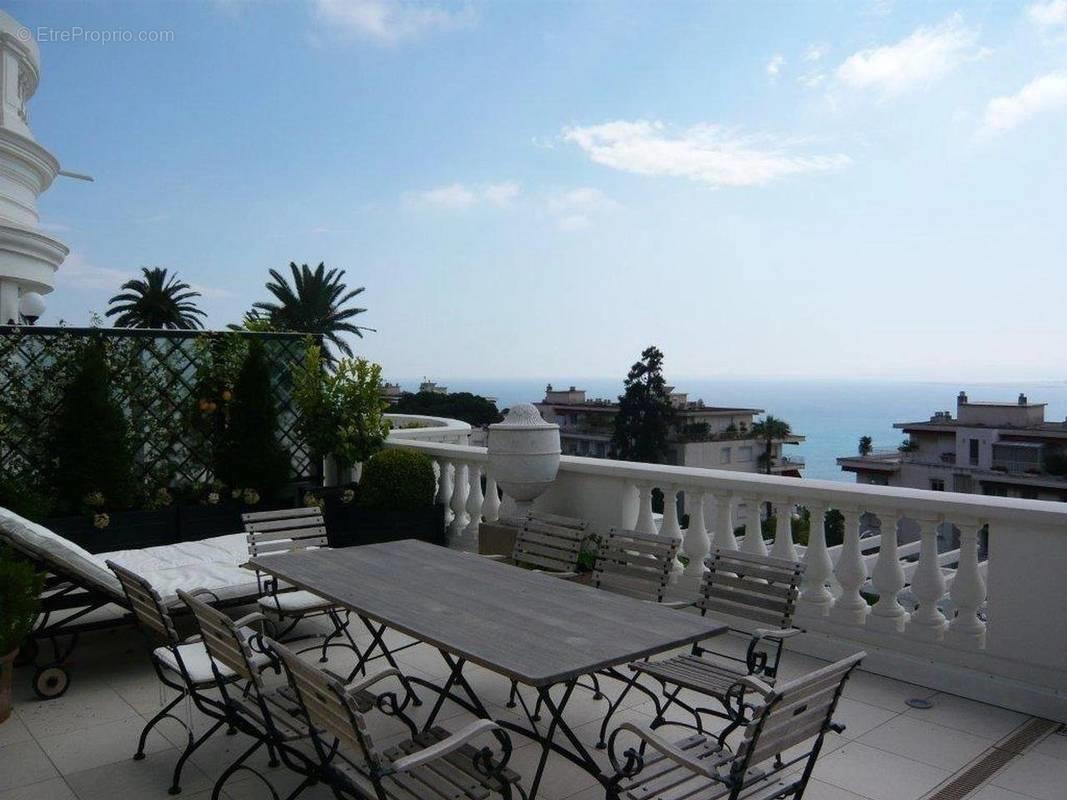 Dans l'une des plus belles résidences de style "Belle Epoque" du Mont Boron, idéalement située, appartement de 168 m² avec terrasse de 85 m² offrant une vue exceptionnelle sur la mer et la baie des Anges. Prestations de qualité, proche mer et commodités. Deux parkings en sous sol.