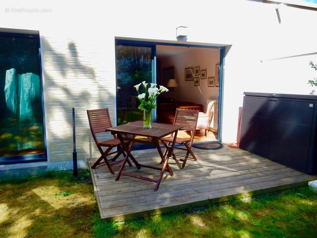 Canclaux : A l'abri des regards en fond d'impasse, dans une copropriété récente et sécurisée, Maison de plain-pied livrée en 2022 avec jardin sans vis à vis et toit végétalisé. Belle pièce de vie avec cuisine aménagée et équipée ouvrant sur la terrasse très ensoleillée. 2 chambres dont avec une porte fenêtre donnant sur le jardin. Possibilité d'acquérir un garage individuel sécurisé en sus. Proche écoles, transports et commerces. Nombre de lots : 193 dont 68 principaux Charges annuelles : 560€ Dpe réalisé le . Montant estimé des dépenses annuelles d'énergie pour un usage standard. Entre 440€ et 660€ par an - prix moyens des énergies indexés au 1er janvier 2021 (abonnements compris) Bien soumis au statut de la copropriété (loi du 10 juillet 1965) Ce bien est proposé par Nathalie Moumétou (Ei) agent commercial immatriculé au Rsac de Nantes sous le numéro 2017Ac00088 Prix Hai 438 900€ soit 418 000€ Net Vendeur (dont 5% d'honoraires Ttc à la charge de l'acquéreur)