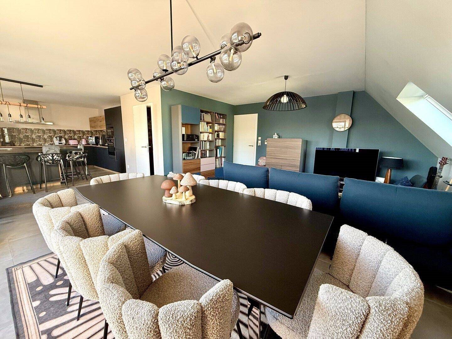 En dernier étage avec ascenseur d'un immeuble de 2022, appartement de 5 pièces de 93,26 m2 (109,24 m2au sol) composé d'une entrée, d'une cuisine aménagée ouverte sur double séjour de 45 m2, le tout donnant sur une terrasse de 23 m2 avec vue dégagée. Une buanderie, ...