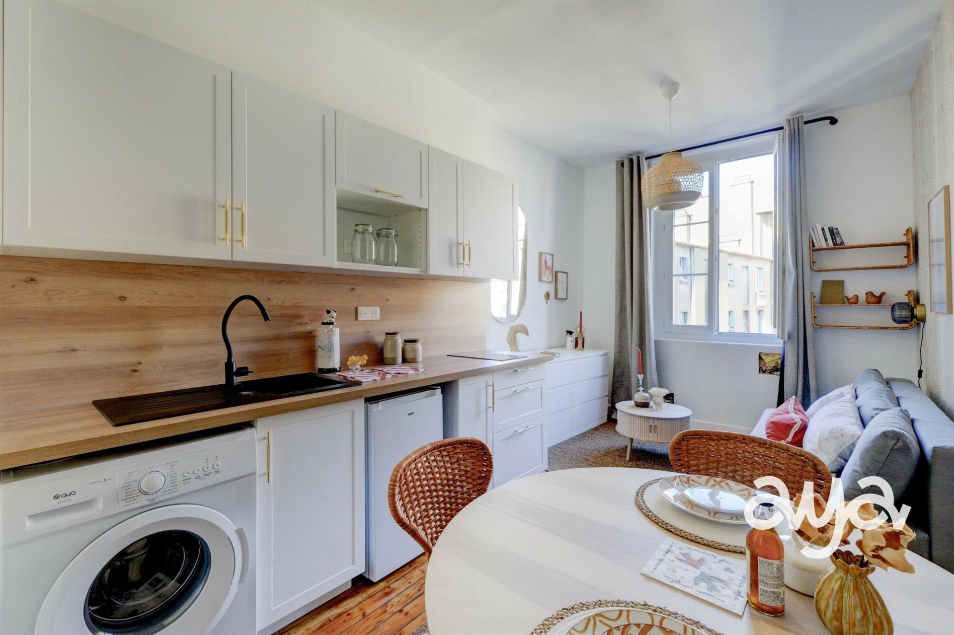 Charmant studio rénové et meublé – Prêt à vivre Au coeur du centre historique de Nantes, rue des Carmes, découvrez ce superbe studio entièrement rénové avec goût et vendu meublé : vous n'avez plus qu'à poser vos valises ! Situé au 4? étage d'un immeuble, il bénéficie d'un agencement traversant offrant une belle luminosité tout au long de la journée, tout en profitant d'un calme absolu — un véritable havre de paix en plein centre-ville. Vous apprécierez : Une entrée qui mène à la pièce de vie Une cuisine aménagée et équipée, avec lave-linge Une salle d'eau moderne, entièrement rénovée Une rénovation soignée, alliant charme et fonctionnalité Une luminosité naturelle grâce à sa double exposition Le confort du mobilier déjà inclus pour une installation immédiate Un espace de rangement privatif sur un palier intermédiaire, idéal pour optimiser votre espace de vie Un chauffage collectif, inclus dans les charges pour plus de sérénité Commerces, transports, restaurants, services… Tout est accessible à pied en quelques minutes. Une adresse parfaite pour un pied-à-terre nantais, un premier achat ou un investissement locatif. Honoraires inclus de 6.43% Ttc à la charge de l'acquéreur. Prix hors honoraires 140 000 €. Dans une copropriété de 40 lots. Aucune procédure n'est en cours. Classe énergie D, Classe climat C Montant estimé des dépenses annuelles d'énergie pour un usage standard : entre 550.00 € et 790.00 € sur les années 2021, 2022 et 2023 (abonnements compris). Les informations sur les risques auxquels ce bien est exposé sont disponibles sur le site Géorisques : . Votre conseiller Aya Immobilier : Anne KERLEAUX Agent commercial (Entreprise individuelle) Rsac 981 824 196 Rcp Nantes . Propulsons l'immobilier, ensemble. Nous ne cherchons pas à grossir, mais à bien grandir. Contactez-Nous via téléphone, e-mail ou notre site internet pour rejoindre notre recrutement et vivre l'aventure.