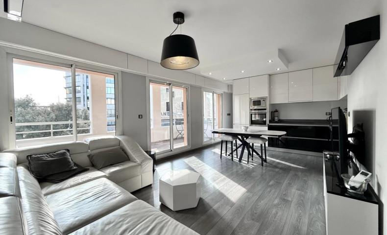 Aix centre-ville. À deux pas des Allées Provençales / Grand Théatre de Provence. Appartement de 76m2 dans immeuble 1998. Il se compose de 2 chambres de 10m2 environ chacune. Dont une avec dressing. Ainsi qu'un bureau de 7m2. Possibilité de fusionner le bureau et l’une des chambres pour obtenir une grande chambre de 17m2. Une salle de bain avec douche à l’italienne et wc séparés. Cuisine entièrement aménagée et équipée, ouverte sur un séjour de 25m2 environ, le tout donnant sur une grande terrasse de 12.5m2 exposée sud. Possibilité d’acheter un double garage fermé accessible par ascenseur en sus. Climatisation réversible. Radiateurs électriques économiques. Multiples rangements.