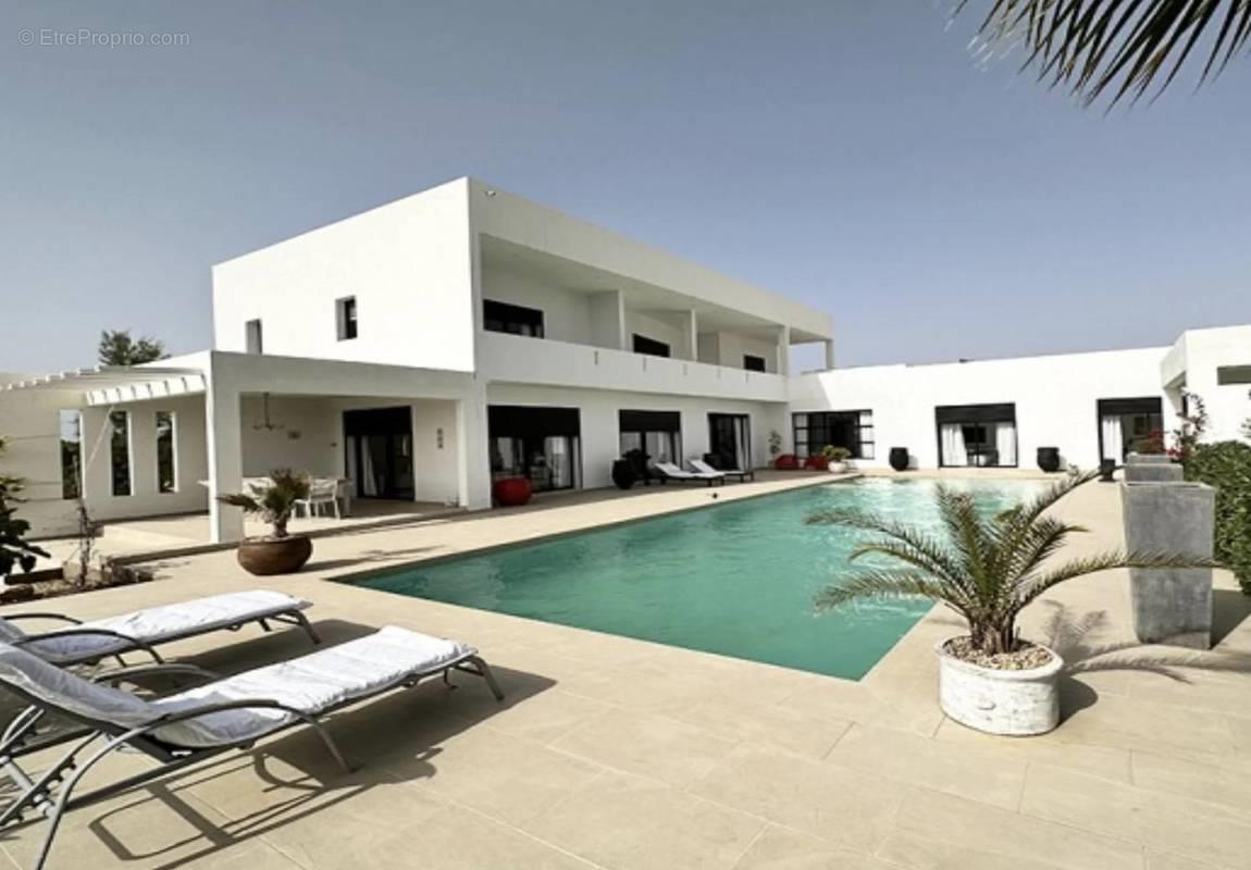 Nous avons le plaisir de vous présenter cette magnifique villa de luxe récente au style contemporain située au Maroc, dans la zone prisée d'Essaouira (à 8km de la ville), sur la route de Marrakech. La villa a été construite en 2020 sur un terrain de 6224 m² entièrement clôturé par des murs en pierre. Elle est au calme et sans aucun vis-à-vis avec vue sur la campagne. La propriété est vendue avec son mobilier contemporain et de qualité. La villa, construite sur 2 niveaux, offre : - Au rez-de-chaussée : un hall d'entrée, un W.C. Invité, une cuisine ouverte équipée en marbre avec îlot central, un vaste séjour / salon de plus de 100 m² avec cheminée, un espace bureau, 2 chambres chacune avec salle d'eau, W.C. Et dressing, un cellier, - Au premier étage : 3 chambres dont 1 avec salle de bains et 2 avec salle d'eau et W.C., une zone de lecture donnant accès au solarium, de nombreux rangements. Le bien comprend également une cave à vins. Le jardin joliment arboré est composé d'une piscine chauffée au solaire avec espace jacuzzi et d'un salon avec pergola. Il est équipé d'un système d'arrosage goutte-à-goutte, d'un puits, d'un boulodrome, d'un système d'éclairage pour les chemins de la villa et d'un portail automatique. Un autre bâtiment avec un espace atelier, une cuisine d'été et une salle de sport viennent compléter ce bien. La villa comprend également une maison avec gardien composée d'une chambre, une salle d'eau et une kitchenette. Chauffe-Eau solaire. Activité de maison d'hôtes ou locations saisonnières possible.