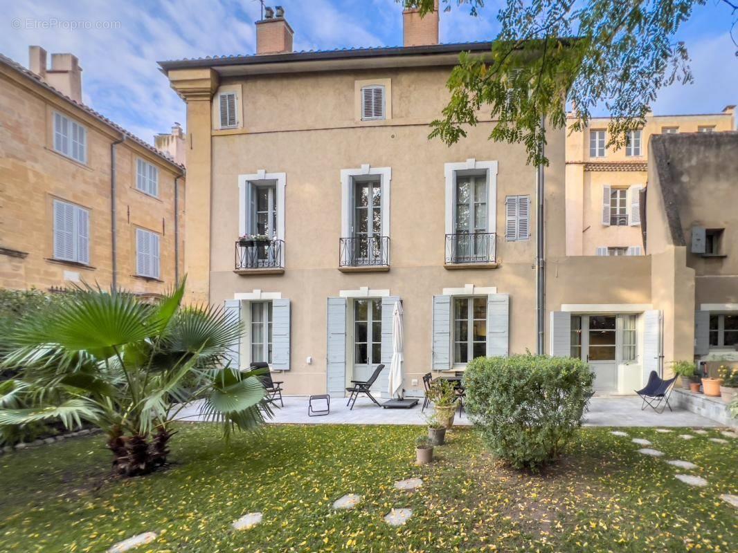 Plongez dans l'élégance intemporelle de ce superbe appartement du 18eme siècle entièrement rénové au coeur du centre historique de la belle ville d'Aix en Provence. Offrant un mariage parfait entre charme historique et confort moderne, cette demeure en rez-de-jardin d'un hotel particulier est une véritable perle rare. D'une surface de plus de 310m2 (dont 118m2 loi carrez), il offre des pièces spacieuses, élégantes et baignées de lumière. Au rez-de-chaussée, deux chambres en enfilade avec dressing et salle d'eau, ainsi qu'un espace plus intime avec une troisième chambre et sa salle d'eau privative. A l'étage, deux chambres supplémentaires Pour vos moments de détente, vous disposerez d'une petite cour intérieure communiquant notamment avec la cuisine entièrement équipée et sa buanderie attenante. Et pour votre confort été comme hiver, l'appartement est entièrement climatisé et dispose d'un plancher chauffant au rez-de-chaussée ainsi que d'une cheminée à l'éthanol. Quant au jardin privé arboré de plus de 250m2, c'est un havre de paix au coeur de la ville, idéal pour se détendre ou recevoir. Le plus : pour vous permettre de vivre en centre ville en toute quiétude, les commodités de stationnement proposent un garage et une place dans la cour. Idéalement situé, ce grand appartement pourrait même être destiné à d'autres projets comme par exemple être transformé en plusieurs logements... Laissez-vous séduire par le charme unique et authentique de ce bien lors de votre prochaine visite!