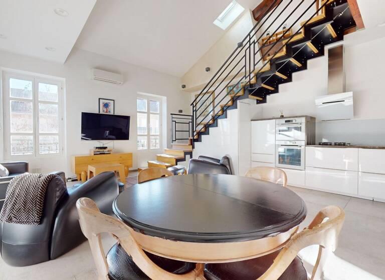 Coup De Coeur - Au centre de l'emblématique quartier Monplaisir-Lumière reconnu pour son histoire et son esprit « village », au pieds des commerces et des transports, nous vous proposons un splendide duplex atypique réinventé par architecte d'une surface de 178 m2 au sol (90,55 m2 Carrez) placé au dernier étage d'un bel immeuble ancien fraichement ravalé. Le niveau principal se compose d'une entrée avec rangements, d'un toilette avec lave mains, d'une pièce de vie de 39 m2 baignée de lumière grâce à ses grandes fenêtres exposées Sud, d'une cuisine équipée parfaitement intégrée dans son espace et d'un cellier aménagé sous l'escalier. A l'étage vous retrouverez une véritable suite parentale avec salle d'eau et dressing, une buanderie, une salle de bains avec sa baignoire îlot, un espace de convivialité et deux autres chambres avec rangements. Les chambres et salle d'eaux bénéficient de larges puits de lumière motorisés avec vue sur les toits et cheminées. En ce qui concerne la domotique : contrôle des velux à distance, volets électriques, contrôle de la climatisation réversible à distance. Grande cave en sous-sol et racks à vélos dans la cour intérieure. Possibilité d'acquérir en sus un boxe fermé pour 25.000 euros. Immeuble composé de 16 lots principaux, pas de procédure en cours, charges annuelles d'un montant de 1.400 euros, aucun travaux à prévoir dans l'immeuble. A découvrir sans tarder ! Copropriété de 16 lots (Pas de procédure en cours). Charges annuelles : 1400 euros.