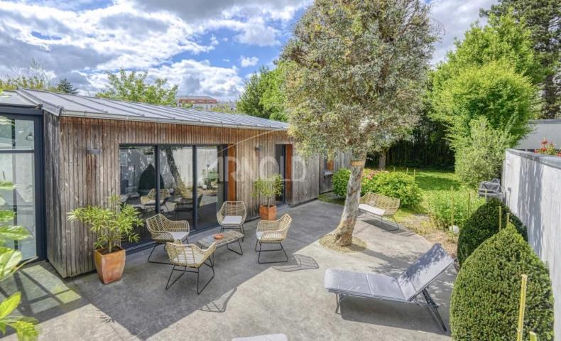 A proximité immédiate à pied du Parc de Procé, des écoles, commerces et transports à pied, agréable maison familiale rénovée en 2012. Située au calme d'une impasse sécurisée, celle-ci saura notamment vous séduire par ses confortables volumes, ses grandes baies ouvertes sur le jardin, son vaste grenier aménageable, sa terrasse ainsi que son ravissant jardin arboré et clos de murs. Cette maison conviviale et lumineuse vous propose en rez-de-chaussée, un hall d'entrée avec vestiaire, une vaste pièce de vie traversante donnant directement sur le jardin comprenant une cuisine ouverte aménagée et équipée ainsi qu'un confortable espace salon et salle à manger avec cheminée, une arrière-cuisine, de même qu'un garage fermé. Un agréable jardin d'hiver revêt le rôle de trait d'union entre l'espace jour et l'extension très réussie qui comprend l'espace nuit avec bureau et suite parentale. Au premier étage, un palier distribue trois belles chambres dont une bénéficiant d'une terrasse ainsi qu'une salle de bains. Pour compléter l'ensemble, un vaste grenier est prêt à être aménagé au gré de vos envies et et occupe tout le second étage. Bien non soumis au Plan d'Exposition au Bruit. Prix de vente 967 000 € dont 4% d'honoraires agence soit un prix net vendeur de 930 000€. Les informations sur les risques auxquels ce bien est exposé sont disponibles sur le site