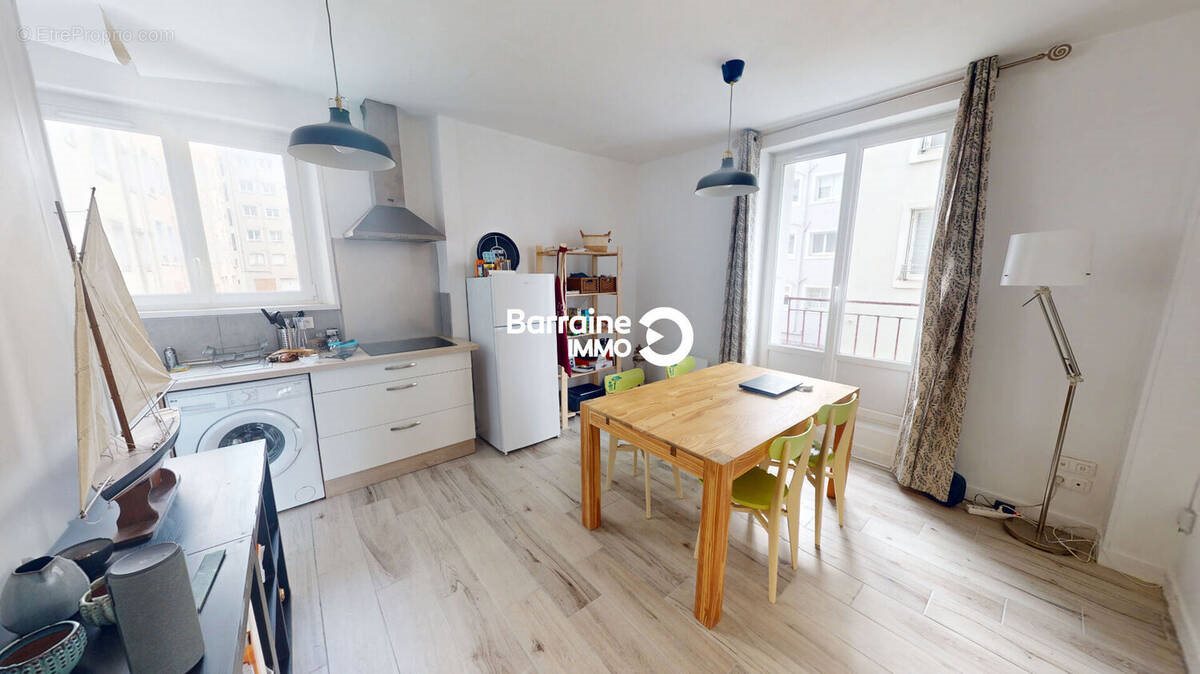 Exclusivite : A Vendre Brest Triangle D'or Saint-Louis Référence : Si00446-Ds Découvrez cet appartement de 2 pièces, idéalement situé à Brest, à seulement 3 minutes du tramway et à proximité immédiate des commerces. D'une surface de 37.79 m², cet appartement en rez-de-chaussée surélevé se compose d'une chambre, d'un séjour lumineux de 16.80 m² exposé sud-ouest, d'une kitchenette, d'une salle d'eau et d'un Wc. Le chauffage est électrique avec des radiateurs et l'eau chaude est fournie par un ballon électrique. L'appartement sera vendu vide et sera disponible à partir du . Côté pratique l'appartement dispose d'une cave et la copropriété d'un local à vélo. L'immeuble, construit en 1950, est en bon état général, avec des fenêtres en Pvc double vitrage et des volets pliants. Vous bénéficierez également d'une cave pour un espace de rangement supplémentaire. Ce bien nécessite quelques travaux d'isolation et de décoration, notamment le détapissage. D'après le simulateur de l'ADEME à compter du 1er janvier l'appartement passera sa note énergétique de G à F, simulation disponible en agence. A proximité, vous trouverez plusieurs établissements scolaires tels que l'École maternelle publique Simone Veil, l'École élémentaire publique Simone Veil et l'École primaire privée Saint-Louis, ainsi que des restaurants et une piscine à 1 km. Ne manquez pas cette opportunité rare sur le marché, contactez l'Agence Barraine Immo Brest - Siam pour plus d'informations. Copropriété de 10 lots - dont 10 lots habitation. (Pas de procédure en cours). Charges annuelles : 1174.37 euros.