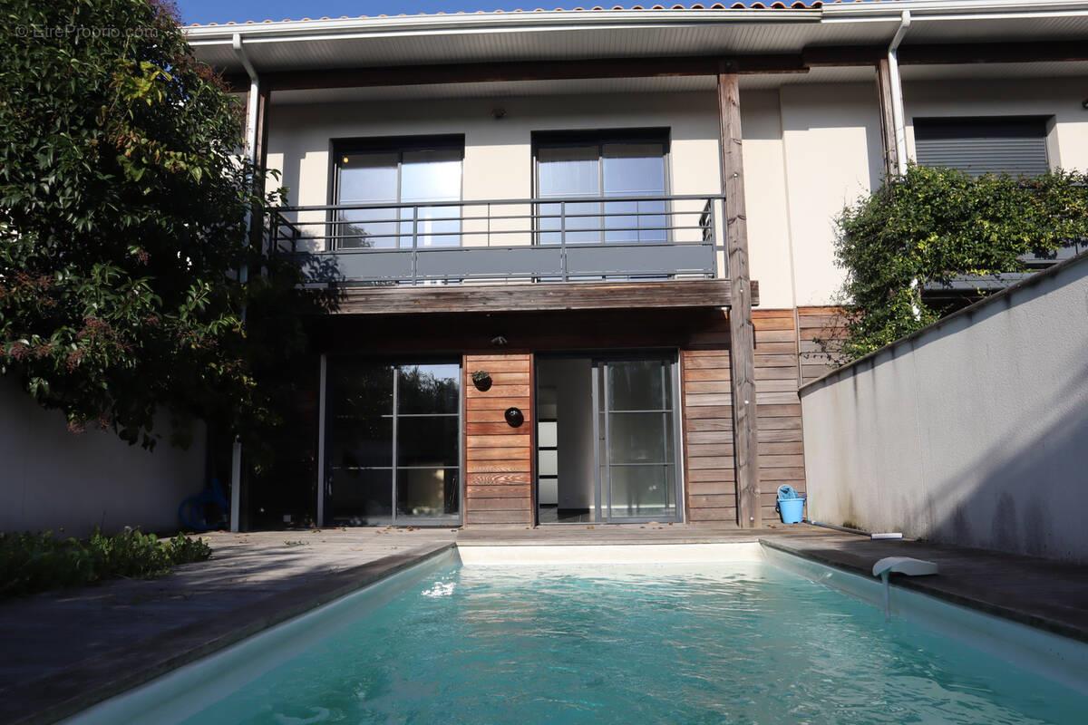 Bordeaux Cauderan - Proche Golf Bordelais et toutes commodités. Au Calme Maison d'habitation (2011) en Parfait état d'une superficie de 121M2 + Garage attenant (15m2) + Piscine sur terrain clos de 222M2. Entrée - Séjour avec Cuisine Us équipée (38M2) ouvert sur jardin - 3 Belles chambres dont 1 avec Dressing et 1 avec Dressing, Balcon et Salle d'eau privative - Salle de bains - Cellier Buanderie - Palier avec rangement - 2 Wc séparés - Tout Confort - Dpe : C - Jardin d'acceuil (possibilité staionnement 1 voiture) Quartier résidentiel et très calme. Bien Rare à la vente
