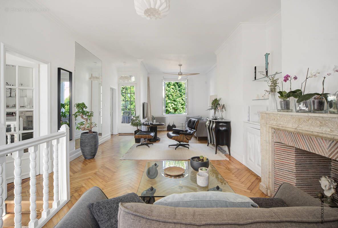 Nichée dans un environnement paisible, cette maison aux volumes généreux séduit par son agencement fluide et ses espaces extérieurs verdoyants. Dès le premier niveau, vous serez accueilli par un vaste salon traversant baigné de lumière, ouvrant sur deux chambres, chacune prolongée par une terrasse arborée offrant un cadre intime et apaisant. Au rez-de-chaussée, une troisième chambre pouvant également faire office de second salon dispose d’une cheminée et de grands rangements sur-mesure. Dans son prolongement, une cuisine dinatoire s’ouvre sur une seconde terrasse, idéale pour profiter des beaux jours à l’ombre des arbres. Une salle d’eau entièrement rénovée se trouve au pied de l’escalier, suivie d’une chambre supplémentaire et d’un bureau, parfaits pour un espace enfants ou invités. À l’étage supérieur, une chambre indépendante bénéficie de sa propre salle d’eau privative, garantissant calme et intimité. Enfin, une grande pièce attenante à la cuisine, d’environ 40 m2, complète l’ensemble : un espace polyvalent pouvant accueillir une salle de jeux, un atelier, une salle de sport ou un espace de réception selon vos envies.