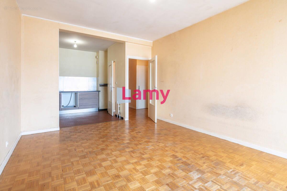 Grenoble, 22 cours de la Libération, dans une résidence fermée avec espaces verts, agréable appartement au calme.Il est composé de 2P+C pour une superficie Carrez de 46.62m² et au 7ème étage avec un balcon exposé Ouest, offrant une belle vue sur les montagnes. Bel agencement avec cuisine ouverte sur séjour, coin nuit avec chambre et dressing. Salle de bains. Travaux de rénovation à prévoir. Cave. Place de stationnement privative en sous-sol possible en sus du prix. A proximité immédiate du tram.