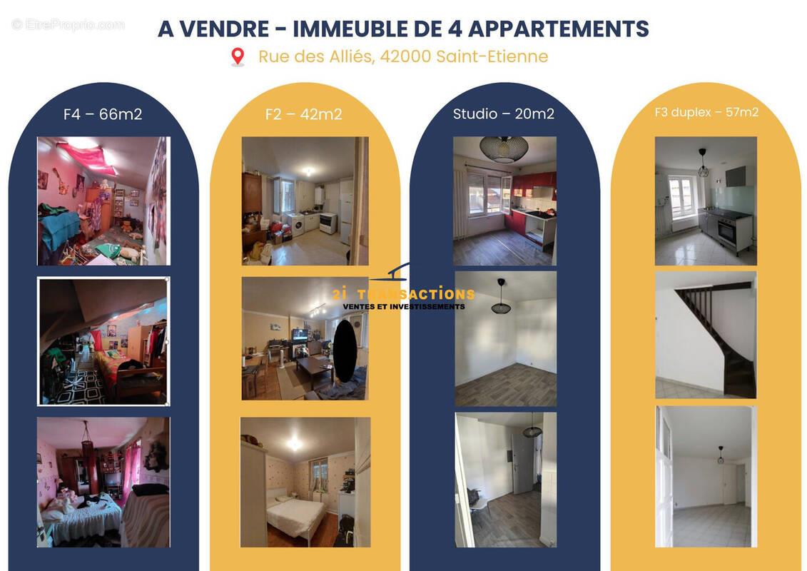 Immeuble de caractère à fort potentiel locatif Imaginez un immeuble de standing, niché dans un quartier dynamique et bien desservi, offrant un potentiel locatif exceptionnel. Cet immeuble, composé de quatre appartements spacieux et lumineux, est une véritable opportunité pour les investisseurs avisés ou les propriétaires souhaitant diversifier leur patrimoine. Chaque appartement a été conçu avec soin, alliant confort moderne et charme d'antan. Les hauteurs sous plafond généreuses, les parquets anciens restaurés et les moulures élégantes rappellent le prestige des immeubles haussmanniens, tandis que les cuisines équipées et les salles de bains modernes offrent tout le confort contemporain. L'immeuble est idéalement situé, à seulement 5 minutes à pied des commodités essentielles. Vous pourrez profiter de la proximité immédiate d'une maternelle et d'une école élémentaire, parfaites pour les familles. Plusieurs restaurants et épiceries sont également accessibles à pied, permettant de savourer la vie urbaine sans avoir besoin de prendre la voiture. Les amateurs de nature apprécieront la présence de deux parcs et jardins à proximité, offrant des espaces verts pour se détendre et se ressourcer. De plus, la ligne de bus 7 est facilement accessible en 5 minutes à pied, facilitant les déplacements dans la ville. Pour les urgences médicales, deux hôpitaux sont accessibles en 10 minutes en voiture, tandis que deux médecins généralistes se trouvent à seulement 5 minutes à pied. L'immeuble est également éligible à l'internet haut débit et à la fibre, garantissant une connectivité optimale pour tous les résidents. Ne manquez pas cette occasion unique d'investir dans un immeuble de caractère, alliant histoire et modernité, dans un quartier dynamique et bien desservi. Contactez-Nous dès aujourd'hui pour organiser une visite et découvrir tout le potentiel de cette propriété exceptionnelle. Honoraires à la charge du vendeur. Classe énergie E, Classe climat E Montant moyen estimé des dépenses annuelles d'énergie pour un usage standard, établi à partir des prix de l'énergie de l'année 2021 : entre 883.00 et 1195.00 . Les informations sur les risques auxquels ce bien est exposé sont disponibles sur le site Géorisques : . Votre conseiller 2I Transactions : Valérie MEDINA Agent commercial (Entreprise individuelle) Rsac 8[Coordonnées masquées]018 Rcp Saint-Etienne