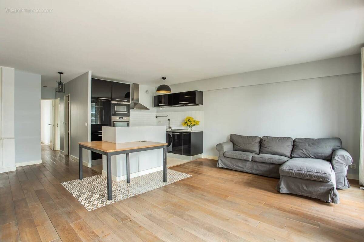 Boulogne-Billancourt : situé rue d'Aguesseau au 3ème étage d'un immeuble des années 1970, appartement trois pièces traversant de 72 m2 avec deux balcons. Une entrée avec rangements dessert une grande pièce de vie de presque 40 m2 avec cuisine ouverte, salon et salle à manger. Deux grandes baies vitrées donnent sur un balcon pouvant accueillir une table et deux chaises. Un dégagement mène à une salle de bains (avec douche et baignoire), des toilettes séparées, un dressing bien agencé et deux chambres qui donnent sur le deuxième balcon côté jardin. Appartement calme et clair, très bon plan, nombreux rangements. Une cave complète l'ensemble. Un box est disponible en sus du prix. Proche des commerces et des transports (lignes de métro 9 et 10 accessibles à pied).