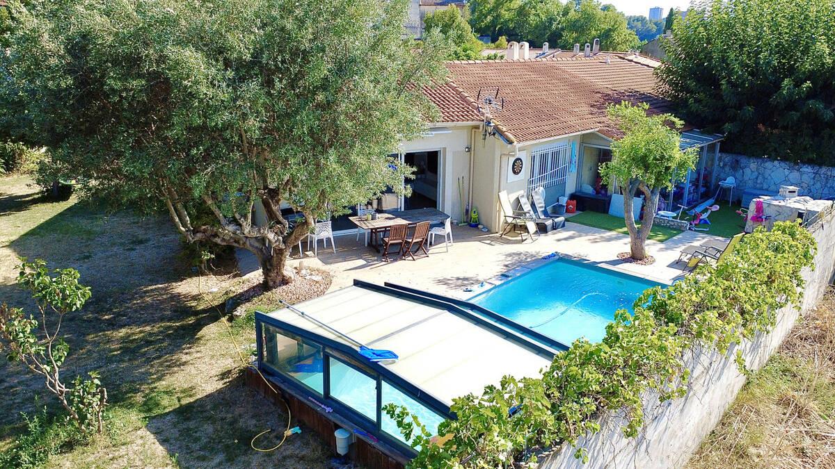 /// Exclusivité Dahan Immobilier /// 13013 Marseille - Les Olives / Les Martégaux Située aux Mont Riant, nous vous proposons cette villa 4 pièces de plain pied d'une superficie habitable de 120m2 habitable (105m2 loi carrez). Elle se compose d'une pièce à vivre de 45m2 avec climatisation comprenant un séjour et une cuisine équipée / aménagée. Elle dispose de 3 chambres de 12m2, 13,20m2 et 22m2 chacune équipée de placard aménagé et la plus grande donnant sur une véranda de 12m2. Enfin une salle de bain de 6 m2 avec baignoire et un wc séparé. Le tout sur un terrain plat, clos et arboré de 700m2 avec une piscine (7x3m) chauffée, avec nage contre courant, capot électrique et régul chlore / ph automatique. L'espace vert est équipé d'un arrosage automatique alimenté par un forage présent sur le terrain. Pour finir, ce bien dispose d'une grande cave de 40m2 et un garage de 20m2. Cette annonce vous est proposée par Loïc et Cédric Dahan - Ei - NoRSAC: 498 388 123, Enregistré à Greffe du tribunal de commerce de Marseille - Annonce rédigée et publiée par un Agent Mandataire -