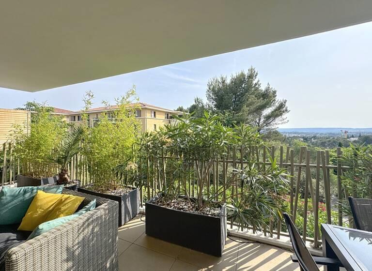 Nous vous proposons a la vente un appartement de type 3, ce bien se situe dans une résidence récente au Nord d'aix en provence, il bénéficie d'une vue dégagée ainsi que d'une grande terrasse, Vous apprécierez le calme absolu de l'emplacement et la magnifique terrasse idéale pour profiter des couchers de soleil. Une des chambres a une terrasse privative. La résidence est sécurisée et offre un accés facile aux transports en commun et aux axes autoroutiers. L'appartement propose des prestations modernes et épurées. Un double garage avec porte automatique vous facilitera le stationnement. Charges : 2800 euros /an chauffage et climatisation. 19 lots. N'hésitez pas à nous pour de plus amples informations ou pour organiser une visite.