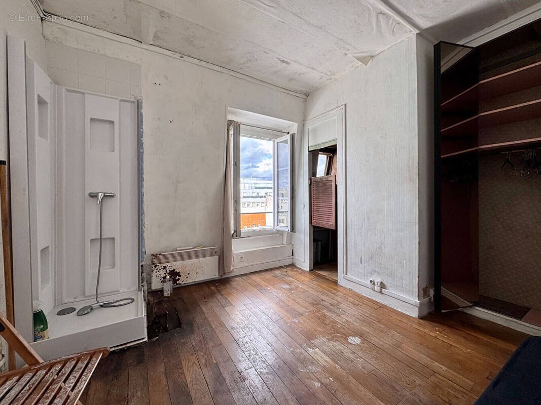 Voltaire / Bréguet-Sabin ? Studio dernier étage, calme et lumineux ? A rénover Paris Immobilier vous propose, dans un bel immeuble 1900 en pierre de Paris, un studio au 6? et dernier étage, entièrement sur cour, offrant luminosité et calme absolu. Il se compose d'une pièce principale avec espace douche, et d'une cuisine indépendante. Un vrai potentiel pour repenser totalement l'espace et créer un cocon sur mesure. Toilette sur palier. Atouts du bien : ? Chauffage électrique individuel ? Fenêtres Pvc double vitrage ? Travaux à prévoir : idéal pour personnaliser chaque détail ? Dernier étage, sans nuisance, dans un secteur prisé du 11? ? Prix : 142.500 euros honoraires inclus Honoraires à la charge du vendeur. Un studio au charme parisien, au calme, parfaitement situé ? une opportunité rare pour un premier achat ou un investissement malin.