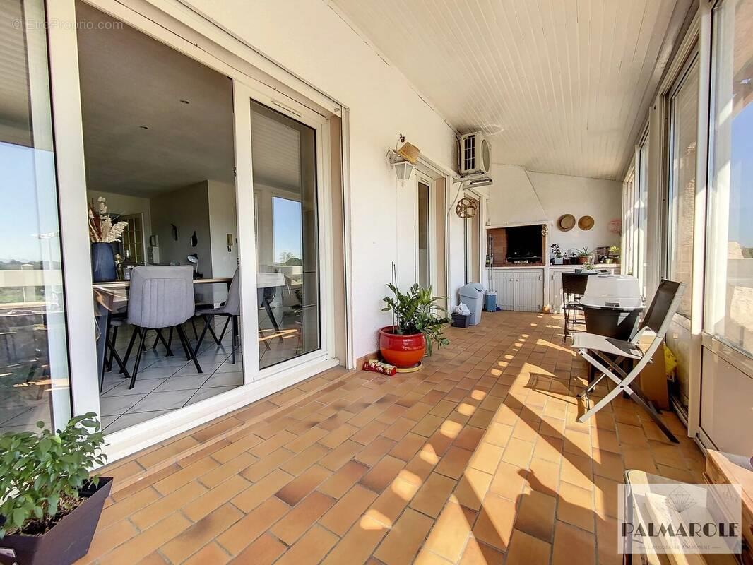 Perpignan Sud Shakespeare - Beau t4 véranda garage Proche de commerces et autres commodités (Mas Guerido). Avec sa cuisine équipée ouverte sur le séjour lumineux et une jolie véranda de 18m² accolée au salon, vous pourrez profiter d'une vue dégagée et apaisante sur les Albères. L'espace nuit dessert trois chambres avec placard, une salle de douche et des toilettes séparés. Double vitrage, volets roulants, climatisation. Un garage de 15m² avec mezzanine d'environ 4.6m² ainsi qu'une place de stationnement permettent de garer plusieurs véhicules. Lots de copropriété principaux : 3 Charges de copropriété : 156€/trimestres Taxe foncière : 1651€/an