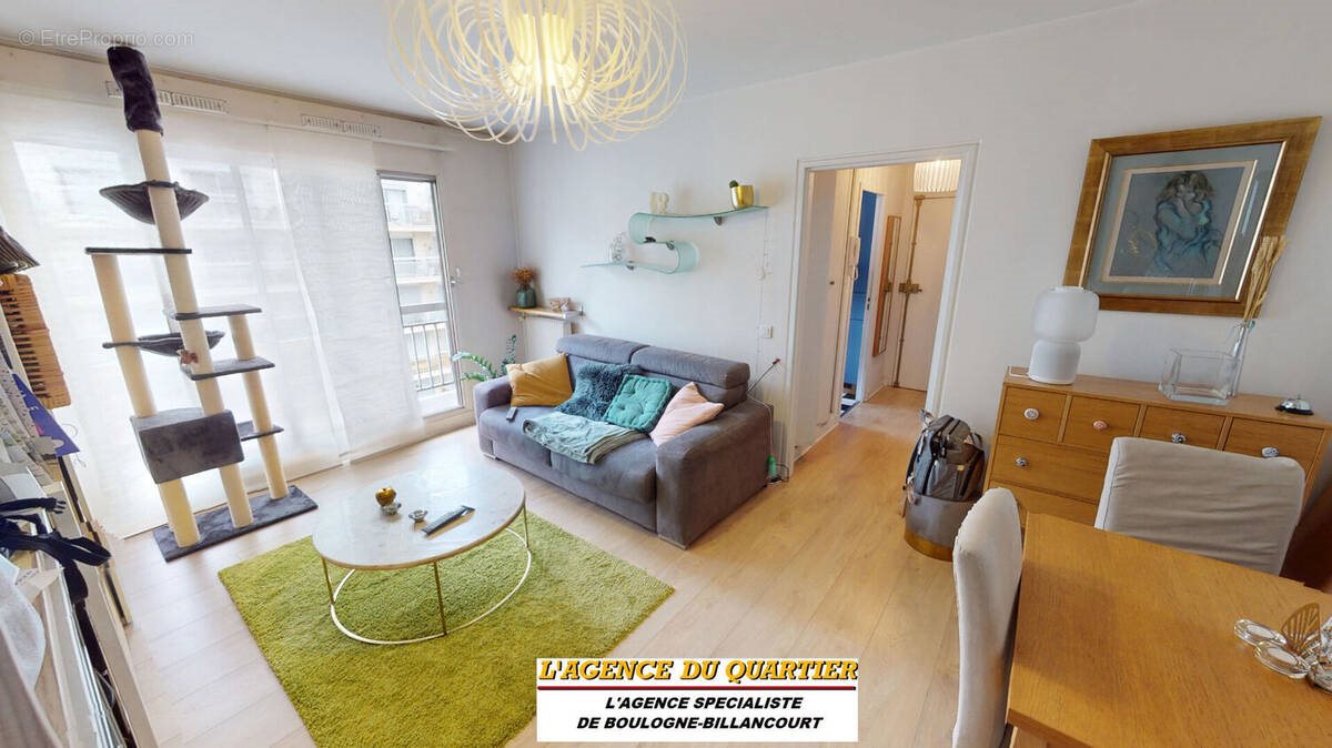 L'agence du Quartier vous propose de prévisualiser cet appartement à travers notre visite virtuelle ! Rue du Point du Jour, à proximité immédiate des commerces de proximité (boucherie, boulangerie, supermarché, fromager etc...) et des commodités du Boulevard Jean Jaurès (commerces, bus, métro 9 Marcel Sembat à 8 minutes), au 4ème étage avec ascenseur d'une résidence sécurisée avec gardien, charmant 2 pièces de 42 m² comprenant entrée avec placard, séjour de 18 m², cuisine indépendante et aménagée, chambre de 9,11 m², dégagement avec placard et salle de bains avec Wc. Le séjour et la chambre sont ouverts sur un long balcon d'environ 10 m². Cave en sous-sol et possibilité d'achat d'un parking en sous-sol à 20.000 euros. Très bon état général (électricité aux normes). Dpe E (améliorable en D par le changement des fenêtres actuelles). Lumineux. Calme. Gardien. Chauffage et eau chaude collectifs. Charges mensuelles 2025 : 250 euros environ Taxe foncière : 803 euros Lots : 67 L'Agence du Quartier, 98 Rue Gallieni 92100 Boulogne-Billancourt Copropriété de 67 lots ().