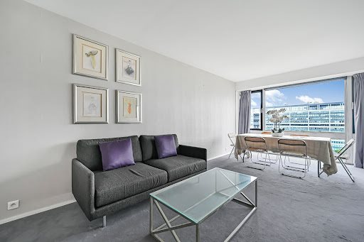 Paris 14ème - Chez Toit Immobilier Situé au coeur du quartier Gaité/Montparnasse, Toit Immobilier vous invite à découvrir ce spacieux 4 pièces d'une superficie de 83m² (loi Carrez) au 12ème étage avec ascenseur d'une copropriété de 1966 conçue par l'architecte Jean Dubuisson, bien entretenue et ultra sécurisée avec gardien. L'atout majeur de ce bien est cette belle superficie offrant ainsi de nombreuses possibilités d'agencements. Sa vue panoramique sans aucun vis à vis donnant sur le Jardin de l'Atlantique est très rare. L'appartement livre les espaces suivants : une entrée avec placard de rangement, une pièce de vie baignée de lumière (grande baies vitrées sans vis-à-vis) ainsi qu'une cuisine séparée aménagée Il est très facilement envisageable de créer une pièce de vie unique avec une cuisine ouverte. La partie nuit est séparée de la partie jour. Découvrez 3 belles chambres très lumineuses, un dressing indépendant, une salle de bains et des wc séparés. Cette partie révèle également de nombreux placards de rangement intégrés. D'autres atouts complètent cet appartement: vue dégagée, traversant, double exposition, luminosité optimale, nombreux rangements. Local à vélo. La situation géographique est parfaite: commerces, transports (Gare Montparnasse, M4, 6, 12 et 13, bus), théâtres et espaces verts (Jardin Atlantique). Une cave complète le bien. Copropriété de 130 lots (Pas de procédure en cours). Charges annuelles : 4320 euros.