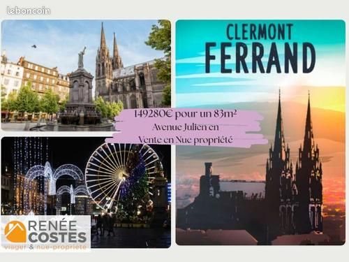 Vente en nue propriété - F77 ans - Clermont Ferrand (63000) Achetez une belle adresse avenue Julien à Clermont Fd. Appartement de 83m² au prix de 149 280Eur. Age : Femme de 77 ans Bouquet : 149280 Eur Rente : 0 EUR/mois Prix d'achat : 149280 Eur Nous vous rappelons qu'en Vente en nue propriété le vendeur reste chez lui, vous ne pouvez y habiter. Dans le cadre d'une « Vente en Nue-propriété », vous achetez le bien avec un paiement immédiat, il n'y a pas de rente à verser. Pour l'investisseur, cela s'apparente à un investissement locatif sécurisé, avec un seul occupant (le vendeur), et pour lequel il reçoit la totalité des « loyers » au moment de l'acquisition sous forme de décote d'occupation (usufruit ou droit d'habitation). Descriptif du bien : Appartement T4 en centre-ville de Clermont-Ferrand Magnifique appartement T4 en plein coeur de Clermont-Ferrand Situé à proximité immédiate de la place de Jaude, cet appartement spacieux et lumineux offre un cadre de vie idéal. Détails: Surface : 83 m² 2 chambres 1 salle de bain Cuisine équipée Grand salon/salle à manger Balcon Cave Analyse financière : La vente se fait sous la forme d'une Nue propriété. Vous achetez l'appartement de ma cliente au prix de 149 280Eur, vous en prendrez la jouissance à son départ. Cette solution vous permets: -Economisez sur les frais de gestion et la vacance locative. -Elle continuera a en prendre soin comme si c'était le sien ce qui est très sécurisant pour vous. L'appartement est traversant avec vue sur le Puy de Dome. 1. Dynamisme économique : Siège de grandes entreprises comme Michelin. 2. Pôle universitaire : Nombreuses universités attirant des milliers d'étudiants. 3. Patrimoine culturel : Monuments historiques et attractivité touristique. 4. Qualité de vie : Espaces verts et événements culturels et sportifs. 5. Accessibilité : Bonne desserte par les transports en commun. 6. Rendement locatif : Demande locative élevée et bons rendements. 7. Projets de développement : Valorisation à moyen et long terme. Clermont-Ferrand combine dynamisme, attractivité et qualité de vie, faisant de l'immobilier un investissement intéressant. Référence annonce : Non soumis au mander plus d'informations