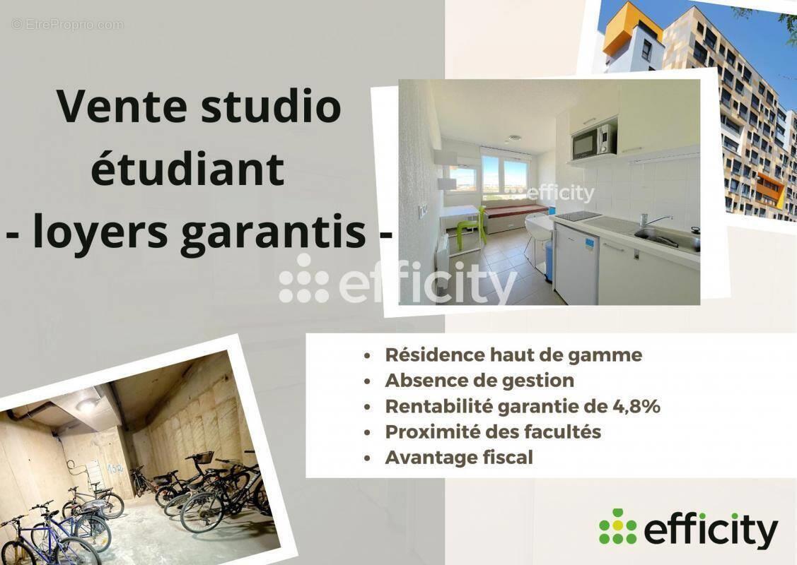 34000 - Opportunite Investissement Montpellier Centre - Studio Etudiant meublé, rentabilité garantie sans gestion. EffiCity, l'agence qui estime votre bien en ligne, vous présente une opportunité idéale pour investisseurs: un ravissant studio meublé et équipé de 19,05 m2 Loi Carrez situé dans le quartier de la nouvelle mairie de Montpellier, à quelques pas des commerces et du bassin Jacques Coeur. Ce studio lumineux et paisible s'établit au premier étage de la résidence étudiante Advenis, une construction récente et bien entretenue. Profitez d'un emplacement stratégique, à quelques pas des commerces et des transports en commun. Le studio est actuellement loué en bail commercial de location d'habitation meublée (régime de défiscalisation Lmnp) pour une durée initiale de 9 ans et 9 mois, avec un contrat restant à courir de 4 ans et demi encore. Cela vous garantit des revenus mensuels fixes de 365 €. Il se compose d'une entrée, d'une chambre avec une kitchenette équipée, d'une salle d'eau avec Wc et un placard. Le studio est prêt à accueillir des étudiants avec ses équipements complets, comprenant une plaque de cuisson, un réfrigérateur avec compartiment congélateur, un micro-ondes, une literie, un bureau et un fauteuil. La résidence offre également des prestations de qualité, telles que : internet fibre haut débit, une laverie connectée, une salle de sport, un local à vélo, un parking voiture et une cafétéria conviviale pour les étudiants. Charges annuelles : 884 €. Taxe foncière : 313 € Contactez Angélique Villedieu, de chez EffiCity, l'Agence qui estime votre bien en ligne, pour plus d'informations au [Coordonnées masquées] ou par mail [Coordonnées masquées] Les informations sur les risques auxquels ce bien est exposé sont disponibles sur le site Georisque : georisques. Gouv. Fr Angelique Villedieu - Ei - est Agent Commercial mandataire en immobilier, immatriculé au Registre Spécial des Agents Commerciaux du Tribunal de Commerce de Montpellier sous le n°. Siège social du mandant : effiCity, 48 avenue de Villiers - 75017 Paris - Société par Actions Simplifiée, société au capital de 132 373,05 euros, immatriculée au Rcs Paris 497 617 746 et titulaire de la Carte professionnelle Cpi 75[Coordonnées masquées]02 025 - Cci Paris Idf - Caisse de Garantie : Galian Assurances 89 rue de la Boétie 75008 Paris