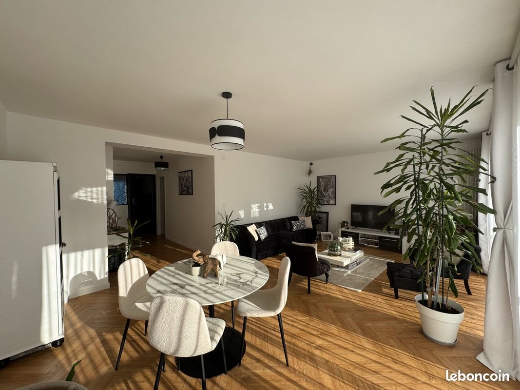 A 3 min à pieds du quartier boulingrin, 10 mn de la gare centre. Quartier prisé de Reims, entouré de maisons de champagne. Appartement de 111m2 entièrement rénové par une architecte d’intérieure, prestations et matériaux de grandes qualités. Aucun travaux à prévoir. (Fenêtres neuves double vitrage, sols parquets et grés cérame, huisseries neuves, peinture blanche aux murs, moteurs volets changés, compteur électrique neuf, etc.) Appartement très lumineux avec double exposition: - Est-Sud côté rue (salon, séjour, une chambre) - Ouest-Nord (côté parkings (cuisine, deux chambres) Cette offre comprend: - Appartement: Grande entrée donnant sur séjour salon salle à manger, et cuisine (10m2) L'espace de vie (29.75m2) possède un mini balconnet, largeur d'une chaise parisienne. Cuisine fermée par porte vitrée et verrière permettant une visibilité sur la pièce de vie. Elle est entièrement équipée avec un bel espace de travail, électroménagers neufs, bar sur mesure pour coin repas 2 personnes. Possède une arrière cuisine, utilisée actuellement comme buanderie. Couloir fermé par une porte à galandage donnant accès à 1 vestibule, 1 wc suspendu indépendant séparé avec lave main, 3 chambres spacieuses (13m2), 1 grande salle de bain, 1 salle de douche, 1 dressing. + Garage Double Avec Cave : - 1 box double donnant la possibilité de garer deux grosses voitures en enfilade (37m2), 1 grande cave (11m2) est comprise dans ce double box. Porte électrique. Le tout dans un espace privé et sécurisé en sous sol avec deux portes pour accès au garage. Très rare pour le quartier. Parkings vendus séparément: (priorité acquéreur de l'appartement) - Possibilité d'acheter 3 places de parkings aériennes, vendues à l'unité. 2 d'entres elles sont actuellement louées. Idéal investisseur, le quartier étant désormais à parcmètre. Le mobilier peut être vendu. L'appartement est mis en vente pour cause déménagement professionnel. Possibilité pour avoir davantage de photos. Agence s’abstenir. Résidence très bien entretenue composée de 8 appartements. Charges copropriétés: 1420€ au trimestre (chauffage collectif, eau chaude et froide en commun, entretien commun, chaudière, ascenceur,…) Fonciers: 2800 €