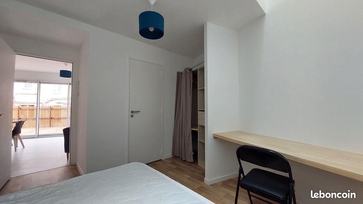 Angers - La Madeleine : Chambre meublée avec salle d'eau privative. Proche Catho et place du Lycée, dans co-location meublée neuve de 98 m² avec équipements et mobiliers neufs. La maison est composée d'une belle pièce de vie avec cuisine aménagée-équipée, 2 Wc indépendants, buanderie équipée d'un lave-linge et sèche-linge, abonnement fibre compris, terrasse, local à vélos. Disponible de suite. Honoraires d'agence réduits. Loyer : 500.00 € + Charges : 60.00 €