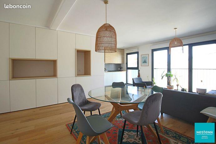 Appartement 3 pièces 77 m² A vendre appartement 3 pièces à 33100 Bordeaux Bastide Vous recherchez un appartement habitable de suite, sans travaux, à 2 pas de la Place Stalingrad ? Alors lisez la suite ! Cet appartement est situé en plein coeur de la Bastide entre la place Stalingrad et l'allée Serr. Vous aurez donc tout à portée de main : Tram A 'Place Stalingrad', Bato, commerces, le marché du vendredi après-midi, jardin botanique, parc aux Angéliques, cinéma, pharmacie. En entrant, vous serez agréablement surpris par la luminosité de cet appartement niché au dernier étage d'une résidence à taille humaine. Le mobilier design créé par une architecte d'intérieur lui donne un aspect moderne et pratique. La pièce de vie de 35m² tournée vers l'extérieur vous apportera une tranquillité qui vous fera oublier que vous êtes en centre-ville. Vous apprécierez aussi la cuisine faite sur mesure et ses nombreux rangements. Pour rendre votre quotidien encore plus agréable, vous aurez une buanderie, un Wc indépendant, une grande salle de bains équipée d'une double vase, d'une douche et d'une baignoire. Les grandes chambres de 12 et 13 m² contribueront aussi à votre confort. Par ailleurs, la construction récente, le chauffage individuel et le Dpe en C vous garantiront des dépenses énergétiques optimisées. Et votre place de parking sécurisée sera, elle aussi, plus grande qu'une place ordinaire. En résumé, vous êtes assuré de vivre dans un appartement spacieux, moderne et confortable. Alors, prêt pour une visite ? Appelez-nous vite pour découvrir les nombreux atouts de ce T3 unique ! Dans notre Agence Nestenn, vous serez accompagné dans votre projet d'achat, de vente ou de location sur la Rive Droite de Bordeaux en général et sur Bordeaux Bastide en particulier. Contactez-Nous maintenant pour en discuter ! Surface : 77 m² A propos de la copropriété : Pas de procédure en cours Statut provisoire du syndicat : Pas de procédure en cours Nombre de lots : 40 Date de réalisation du diagnostic énergétique : Consommation énergie primaire : 73 kWh/m²/an Consommation énergie finale : Non communiqué Les informations sur les risques auxquels ce bien est exposé sont disponibles sur le site Géorisques : plus d'informations