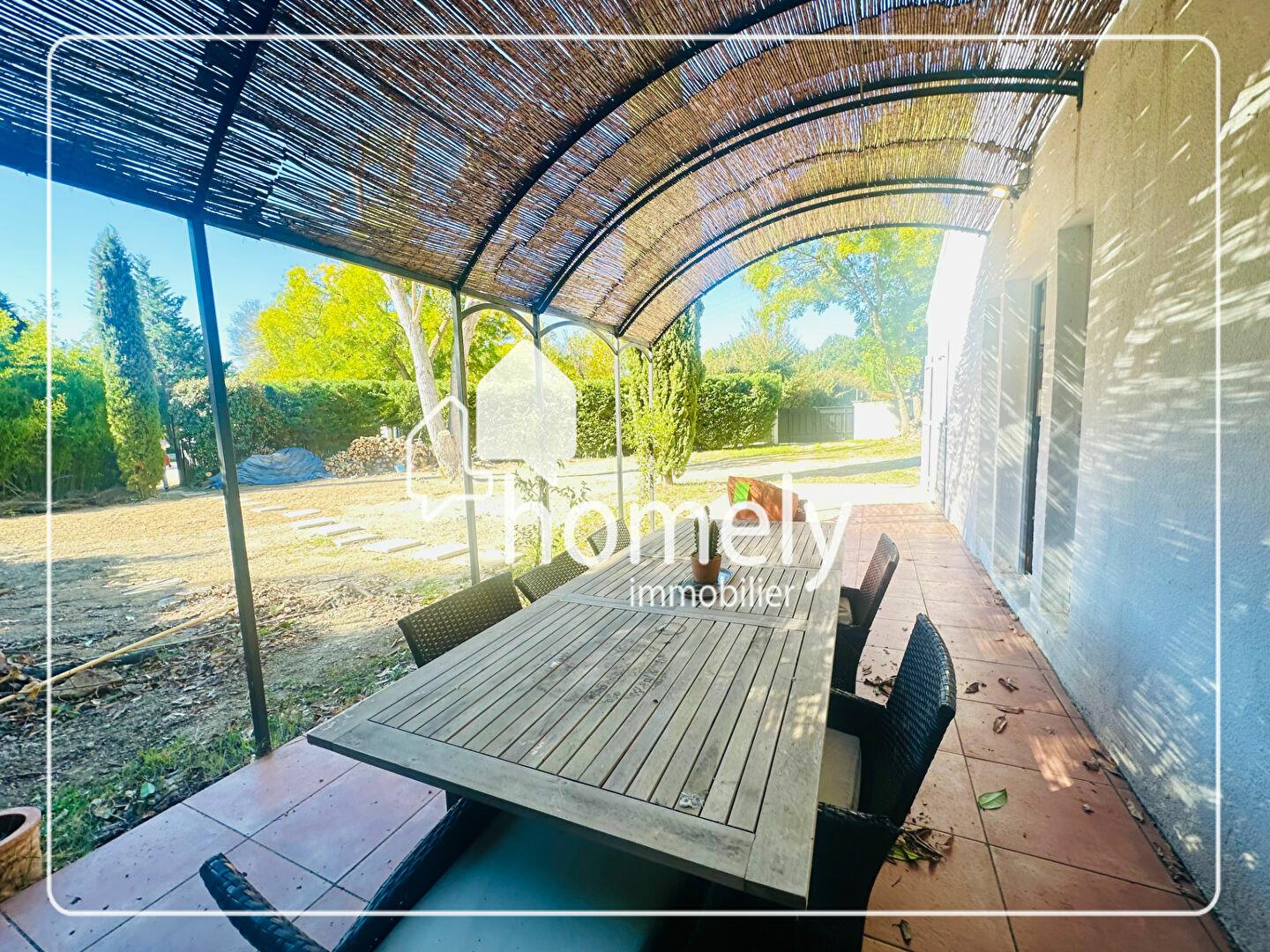 À proximité d'Éguilles, maison meublée de plain?pied de 90 m² comprenant trois chambres, dont une chambre parentale. Située au calme, elle dispose d'un jardin clos et d'un garage. Le loyer comprend l'eau et l'électricité.