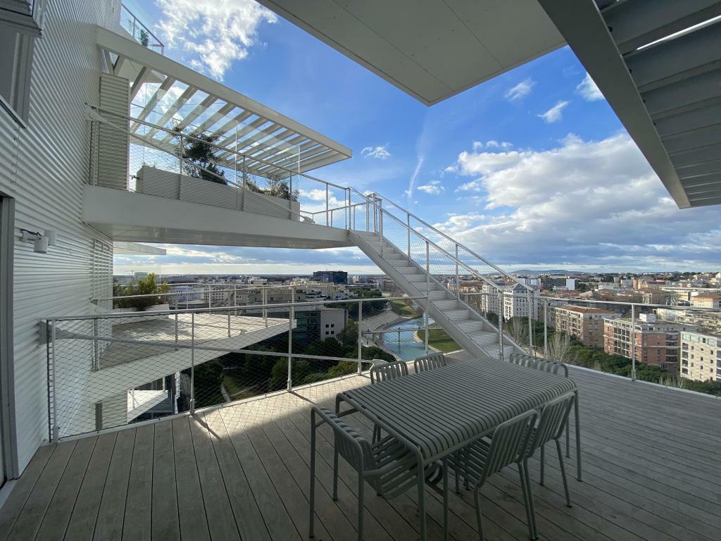 Dans Une Residence Securisee De Haut Standing L Arbre Blanc - Appartement 5 pièces de 142,75 m2 habitables avec trois terrasses (34,80 m2, 25,10 m2 et 22,90 m2) comprenant au R+13, une entrée, un séjour/salle à manger, une cuisine, un cellier, une chambre, une salle d eau, un wc indépendant et au R+14, un palier, une chambre avec dressing, une chambre dite suite parentale avec dressing et salle de bain, un espace bureau avec rangement, une salle d eau, un wc indépendant, un dégagement, deux garages fermés en sous-sol et un cellier en sous-sol. Loyer : 2 500 € + 500 € provisions sur charges comprenant l eau chaude, l eau froide, le chauffage et climatisation, les charges locatives et la taxe d ordures ménagères. Dépôt de garantie : 2 500 €. Honoraires d agence : 1 250 € dont 428 € d état des lieux. Dpe (B) Ges (A). Réf Ab1302